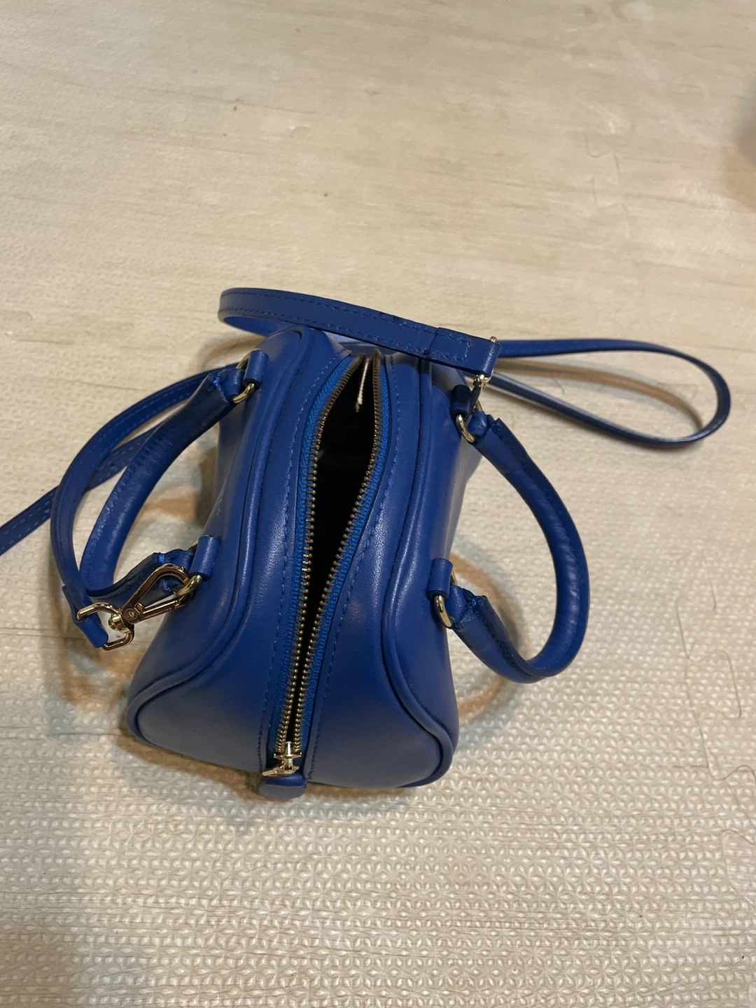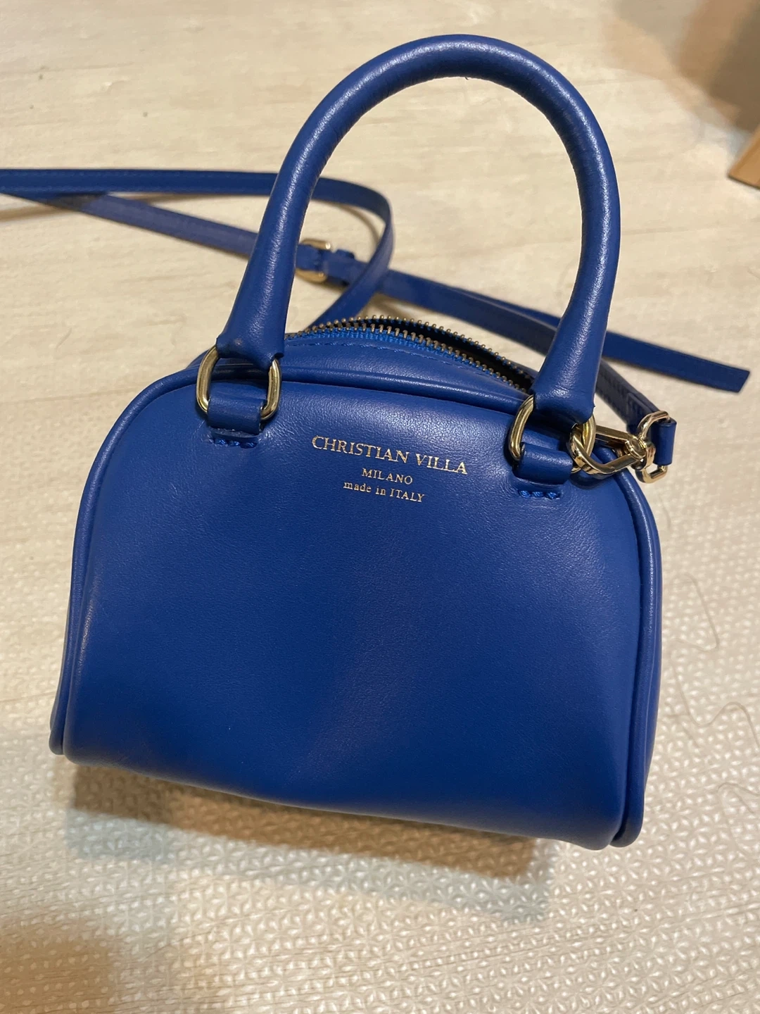クリスチャンヴィラのショルダーバッグです ・カラー:青 ・素材:レザー ・イタリア製 ・小さめのサイズ感 形、色が可愛くて購入しましたが、私には小さすぎて一回くらいしか使用していません。 ミニ財布愛用の方にはちょうどいいかもしれません。 使用感はありませんが、自宅保管をしていますので、中古品であることをご理解できる方のみよろしくお願いします。 ご不明点があればお気軽にご連絡ください