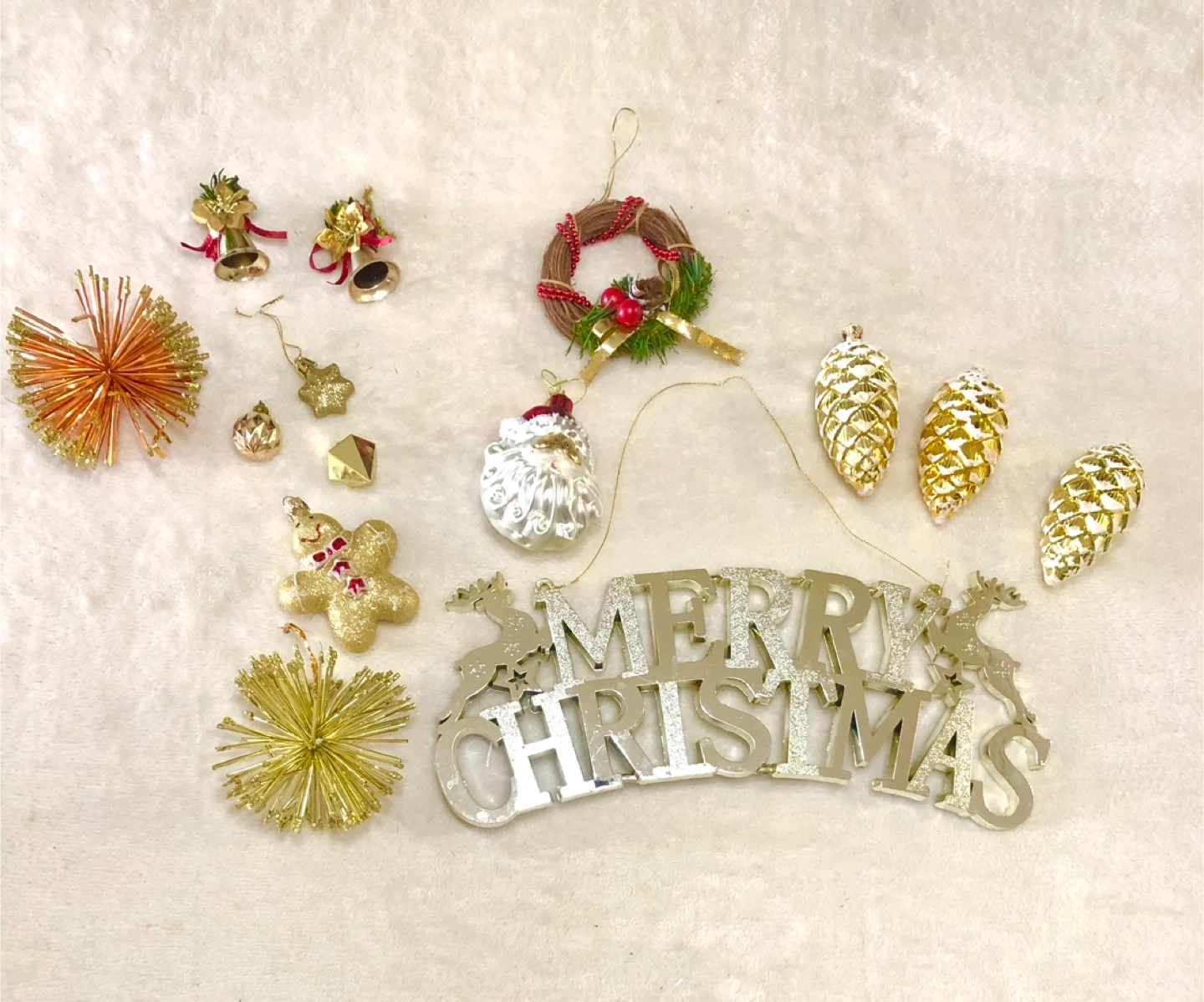 🌹✨葉っぱモチーフ オーナメント 赤/ゴールド
