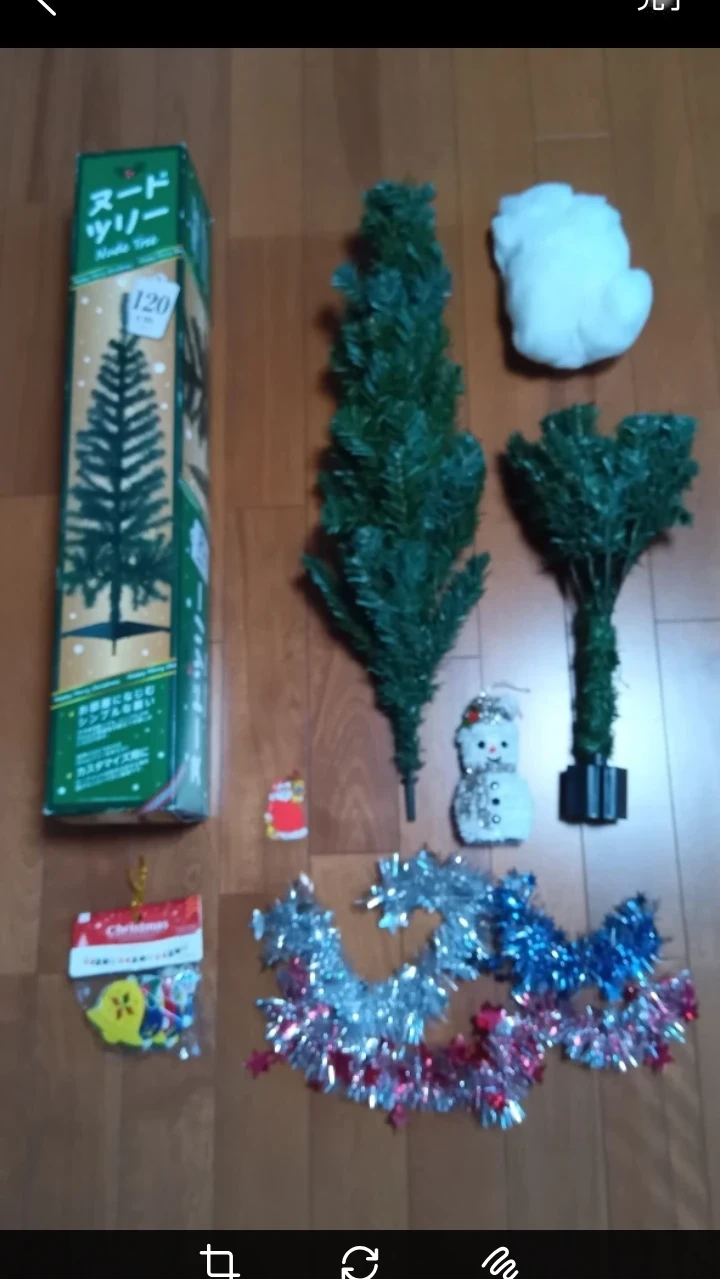 クリスマスツリーセットです。一度使いました。 ・クリスマスツリー本体、装飾品 ・高さ約120cm ・箱にR16NT120-Dの記載あり ・綿を、雪のように装飾できます。 ・ツリーの枝は、広げて装飾できます。収納するときは写真のように細くします。 中古品であることご了承ください。