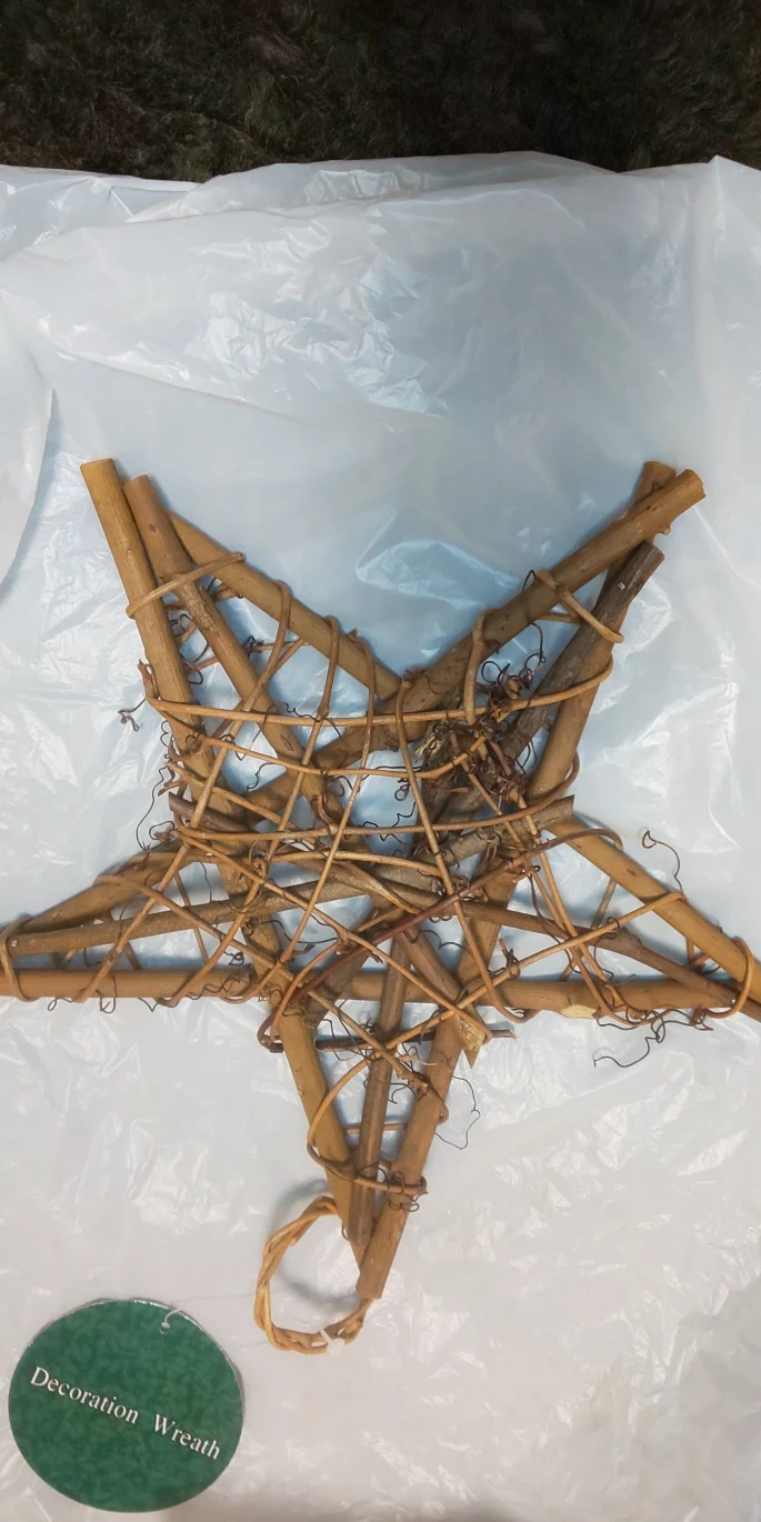 星形のラタン、クリスマスリースです。 大きさは、24cm これからでも、クリスマスリースを作りませんか?