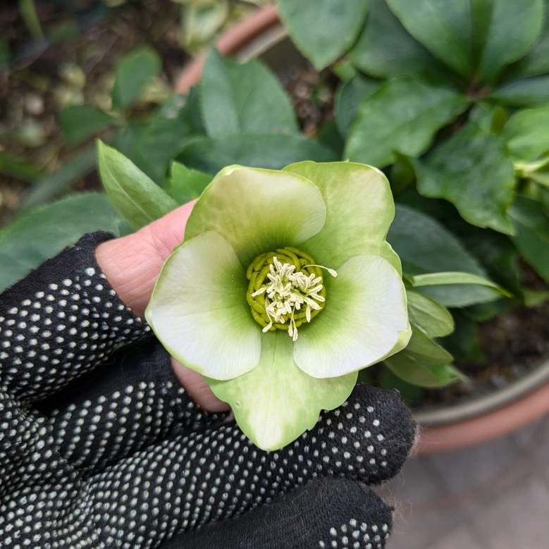 自宅で育てたクリスマスローズです 花色は、爽やかな白色〜黄緑 一重、株分け後2年目、3株の内、花茎は1本ですが、しっかりと育った株です。 毎年咲くでしょう 径13.5センチの 深鉢入りで、暫くは植え替え不要です 金額を市場調査の上、お越しください 大事に育てていますので、 クリスマスローズのお値引きできませんが、他の植物※を差し上げることが出来ます↓ ※宿根すみれ ※渦紫陽花(おたふく)挿し木苗 ※ペラルゴニウム挿し木 ※ヒメヒオウギ種 ※十二単衣(アジュガ) ※コリセウムアイビー、その他 自宅へ来て頂ける方限定です 見てから決めても、大丈夫です