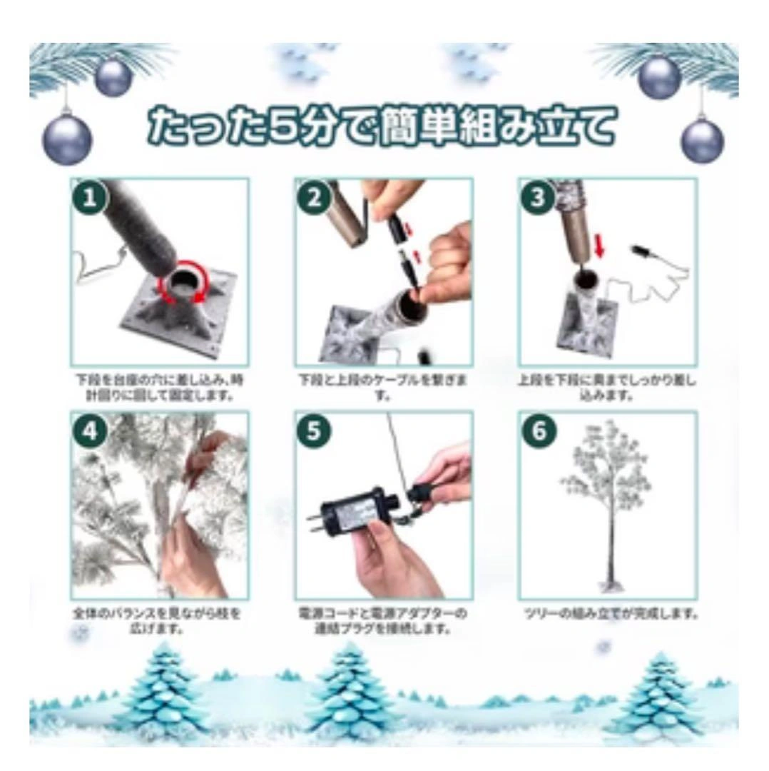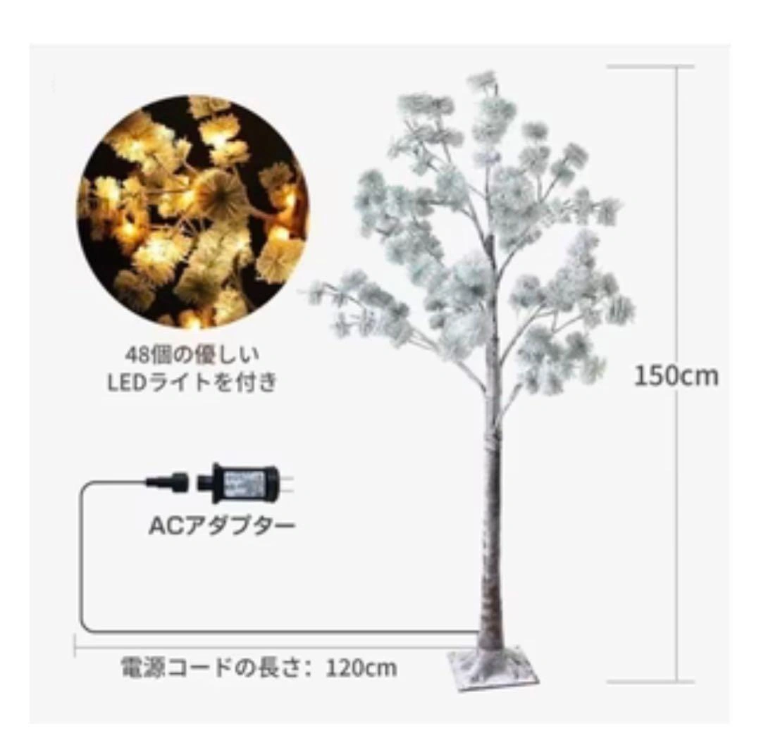 ご覧いただきましてありがとうございます。 軽い商品ですから、下げてのご持参も可能です。 スノーツリー ホワイトライトツリー LEDライト付き 約150cm 組立て式です。 シンプルで手ごろな大きさで、お部屋の場所をとらない、とても明るいスノーライトツリーです。 クリスマスツリーとしてのライトツリーの商品ですが、デザイン的に年中お部屋を演出して活躍してくれます。 お店のアピールにもご利用頂けます。 軽くて組み立ても簡単なので、ご家庭やお店やホテルでも、お好きな場所で手軽に飾って、保管もしていただけると思います。 シンプルデザインなので、リビング、ベッドルーム、バルコニーなど屋外にも合うと思います。 - 色: ホワイト - 素材: 塩化ビニル樹脂、スチール - 高さ: 約150cm - 用途: 装飾用 展示用 - 組み立て時間: 約5分 - 付属品:ツリー、電源コード、日本語取扱説明書 【リアルな雪化粧加工】 ツリー全体には美しいフロスト加工がされています。雪に覆われたツリーを見ると、季節感を味わえ、北欧のロマンを感じることができます。強く触ると白い粉が落ちてしまう場合がございますので、ご了承くださいませ。 【自由に曲がる枝部分】 枝の根元から先端までワイヤーが通っているため、枝の向きや開き具合を簡単に調節できます。自分好みにデザインしてください。 【様々な場面に適用】 自然な冬を感じさせ、優しく照らすホワイトツリー。ご家庭、ショップ、レストラン、イベント会場などあらゆる場所におすすめです。イベントが終わってもお部屋や店舗ディスプレ、オフィスのムードづくりに役立ちます。 ご希望の方はお気軽にご連絡ください。