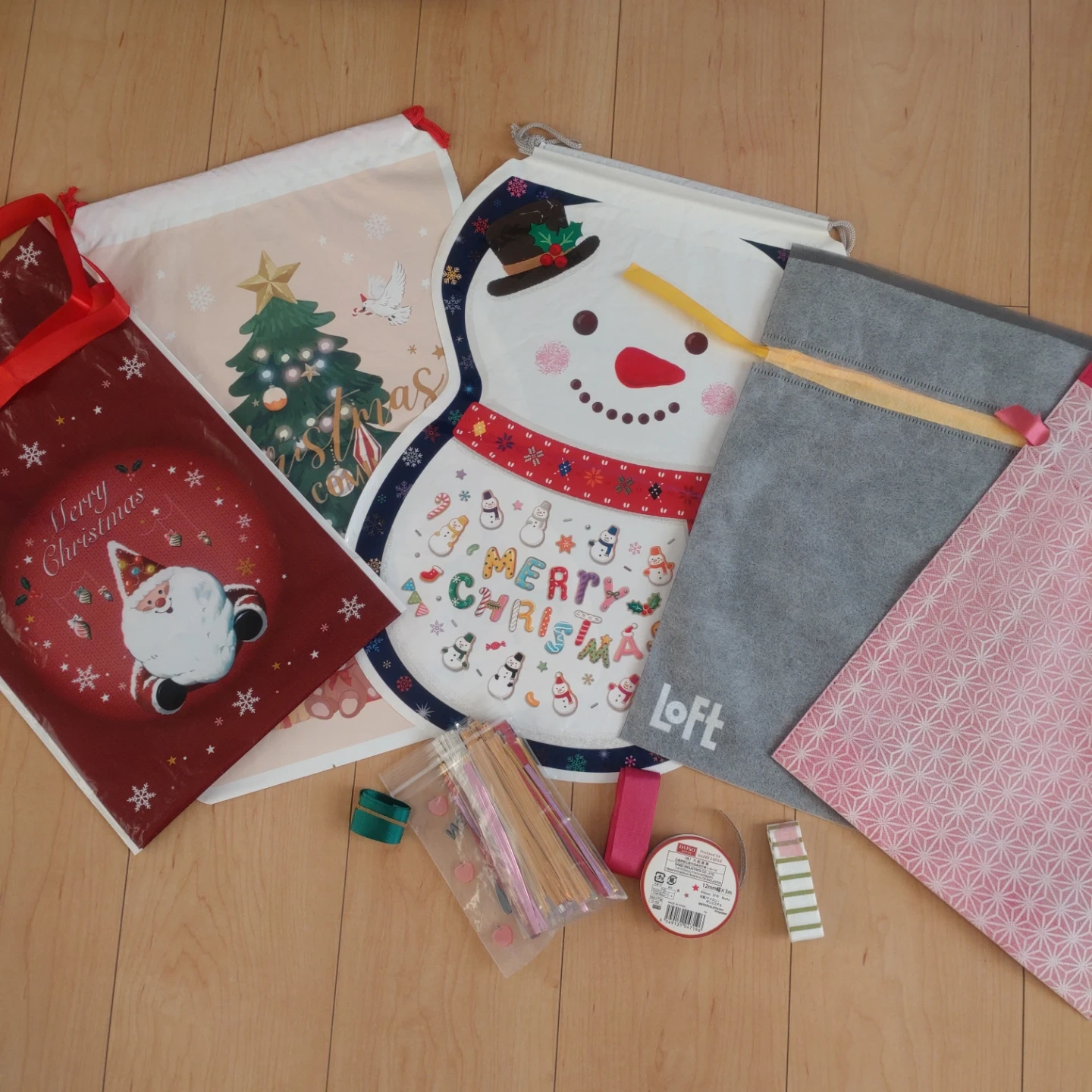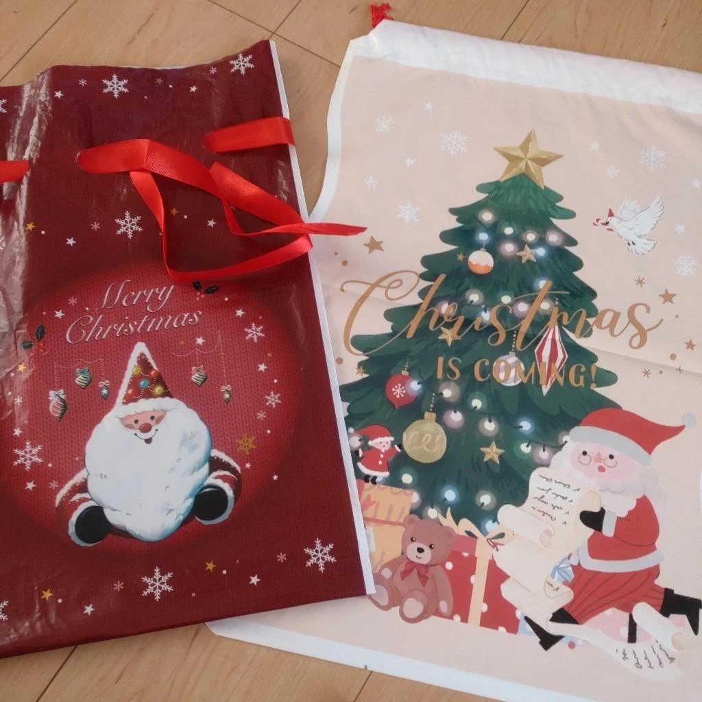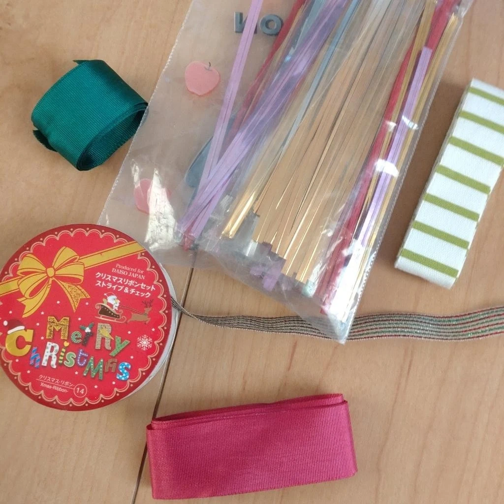 家に保管していたラッピング用品です。クリスマスっぽいのをまとめてみました。ビニール素材のものは折って保管していたので折跡あります。縦のサイズは約45センチ、横約30センチくらいの袋です。 リボンは長さは測っていません。ねじってとめるラッピングタイは結構沢山あります。 鶴見区北寺尾でのお渡しを考えています。