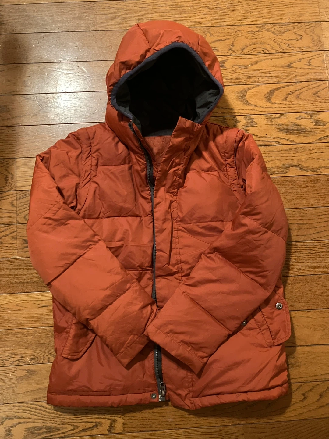 ボタンが一つちぎれています。 イチヂクみたいなオレンジ色です。 腕がジッパーで取れてダウンベストにもなります。 クルーカッツのダウンジャケットです。 ・ブランド:クルーカッツ(CREWCUTS) ・サイズ:12 (150cm) ・素材:ポリエステル100%、中綿:ダウン70%、フェザー30% ・色:オレンジ ・中国製 中古品であることをご了承ください。