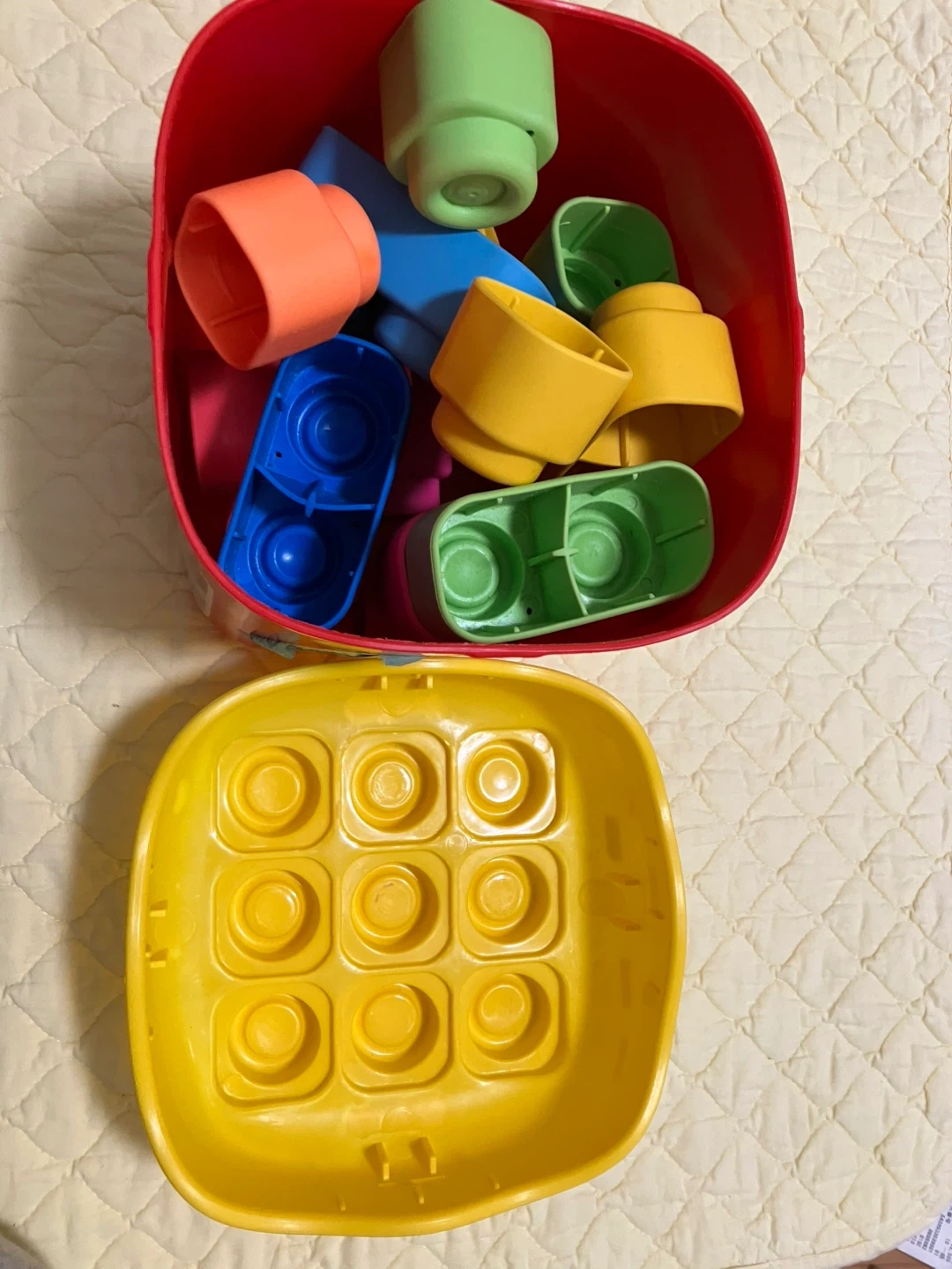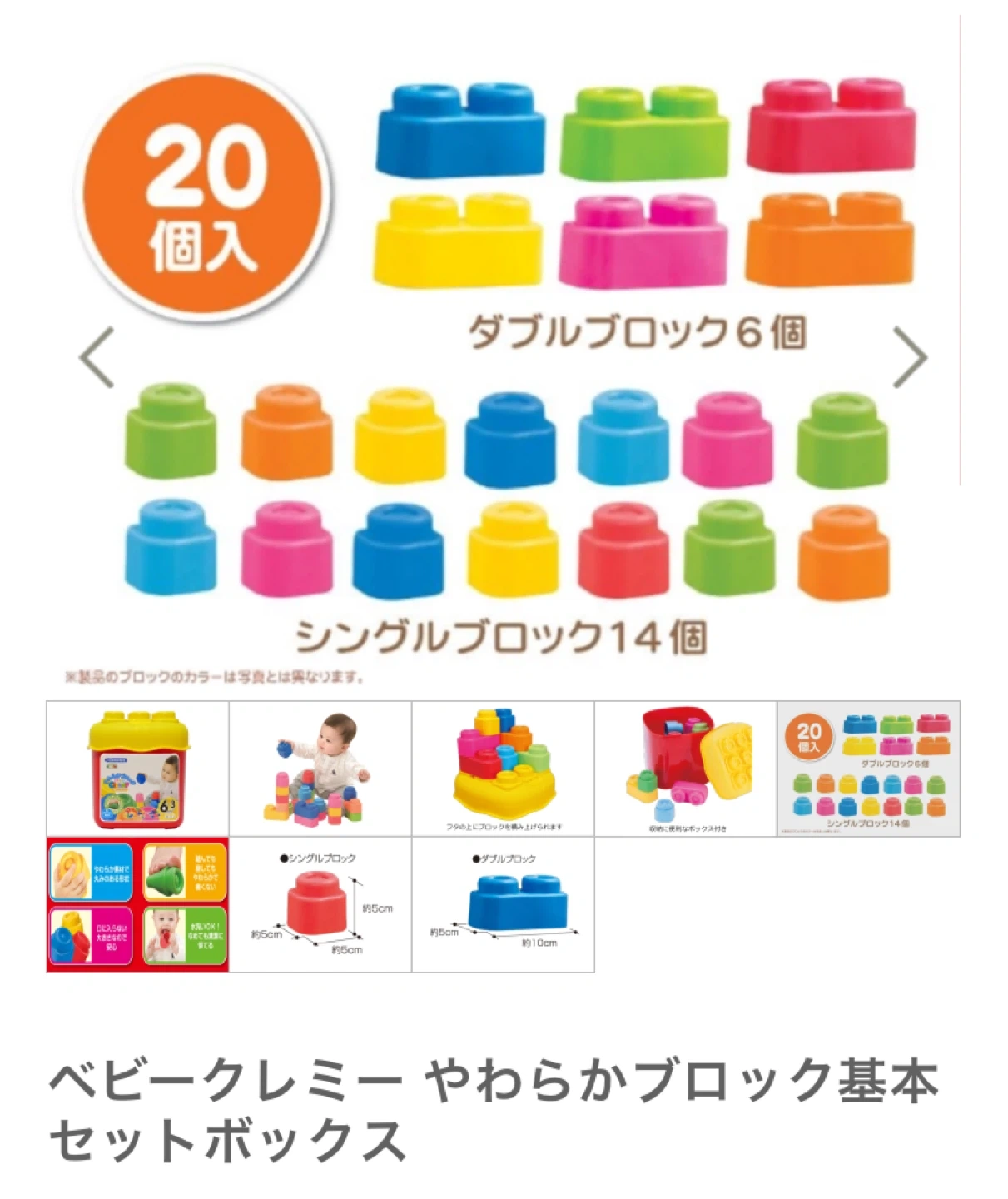 クレメンタニーのやわらかブロックです 三つ足らないみたいです。 画像参照くださいませ。 汚れあります。 価格:3,850円(税込) 【セット内容】 シングルブロック×14個、ダブルブロック×6個 【バケツサイズ】W19.5×D19.5×H23cm 【情報】 ブランド:クレメンタニー 商品名:ベビークレミー やわらかブロック基本セットボックス 【状態】 使用感はありますが、まだまだ遊んでいただけます 中古品であることご了承ください
