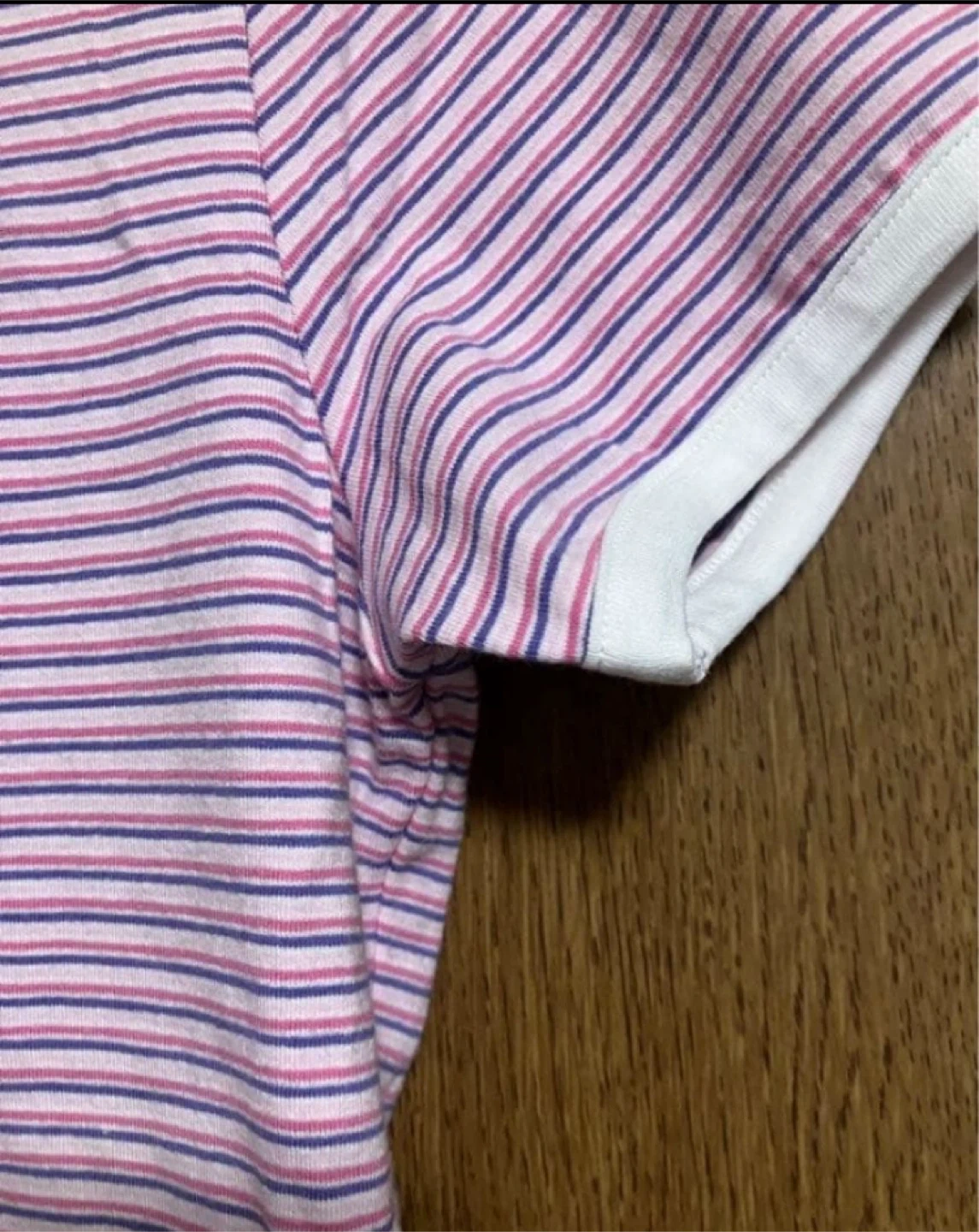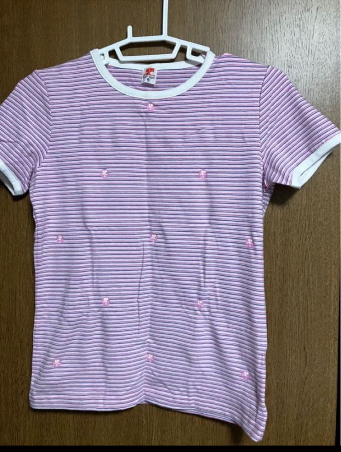 クレージュのストライプTシャツです。 ・ブランド:クレージュ ・色:ピンク、白、紺のストライプ ・デザイン:全体に花の刺繍 ・サイズ:細身のMサイズ 38 ・状態 未使用 長期保管 タンスの臭いがあるかもです タバコすいません ペットいません 中古品であることをご了承ください。