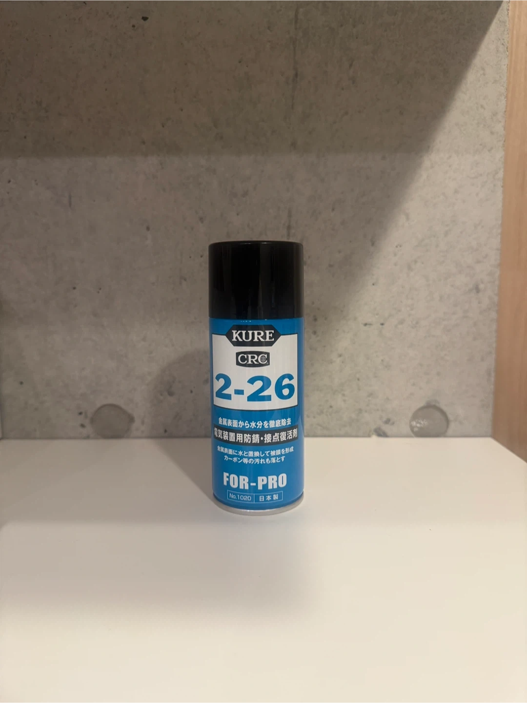 クレ CRC 2-26です。 金属表面から水分を徹底除去する電気装置用防錆・接点復活剤です。 ご不明点があればお気軽にお尋ねください。