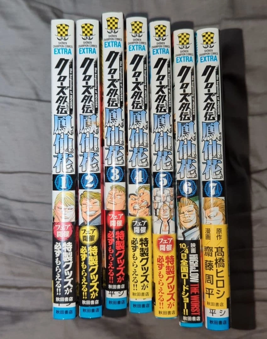クローズ外伝 鳳仙花 漫画 1巻から7巻 本棚にて保管しておりました。素人保管ですので神経質な方は御遠慮ください。 レンタルアップではありません。 戸亜留市の隣町にて、最強の名をほしいままにしていた中学生・寺門仏陀。彼は、恋をしたりダチとバカやったりフツーの青春がしたいと、ケンカをやめて新設校の鳳仙学園に入学するが…!? “殺しの軍団”鳳仙学園誕生秘話!! ご希望の方はお気軽にご連絡ください。