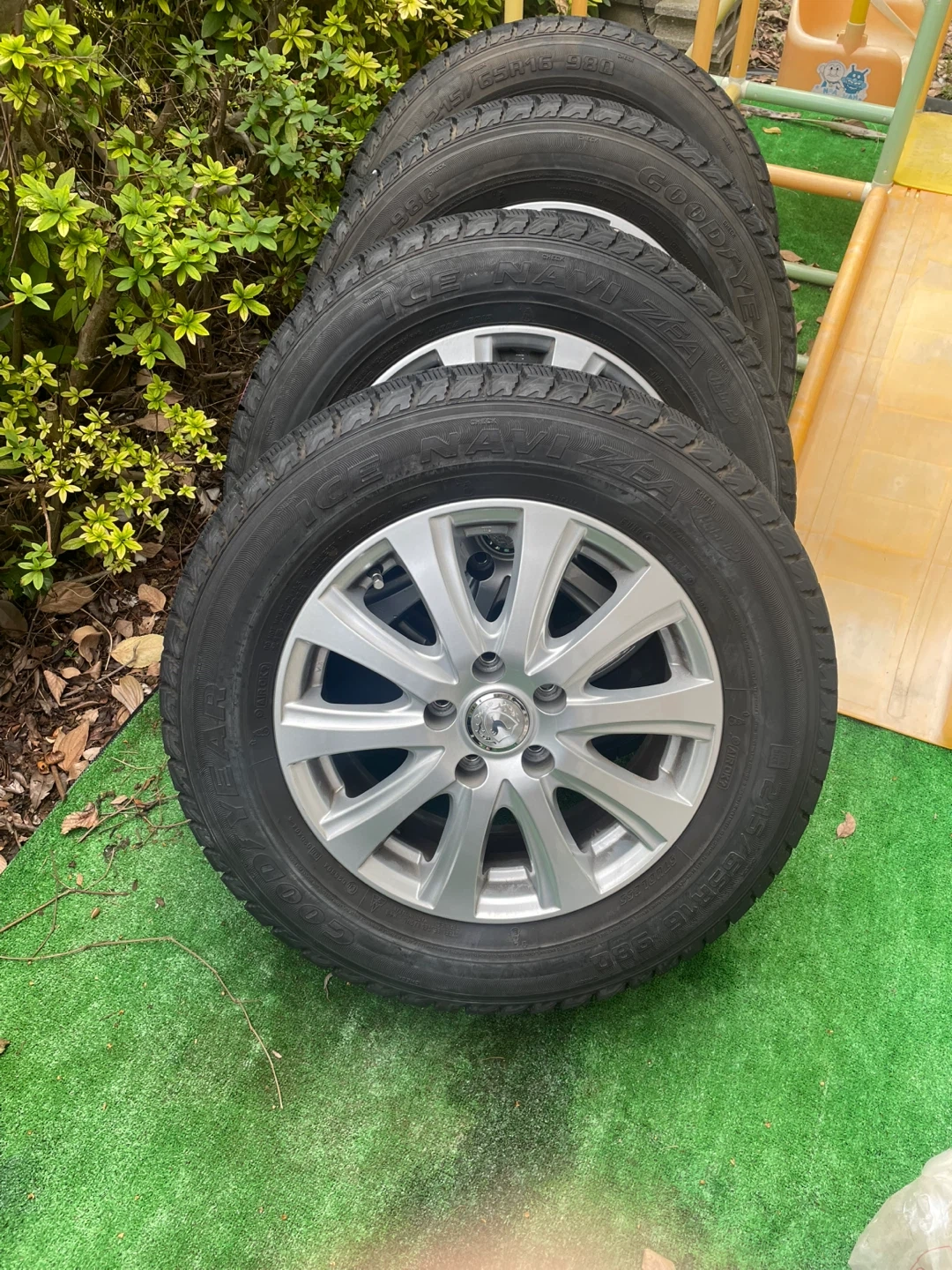 グッドイヤー スタッドレス+アルミホイール 215/65/16 4本セット タイヤは5年落ち まだまた使用可能かと思いますが、自己判断でお願いします。   アルファードに使用していました。