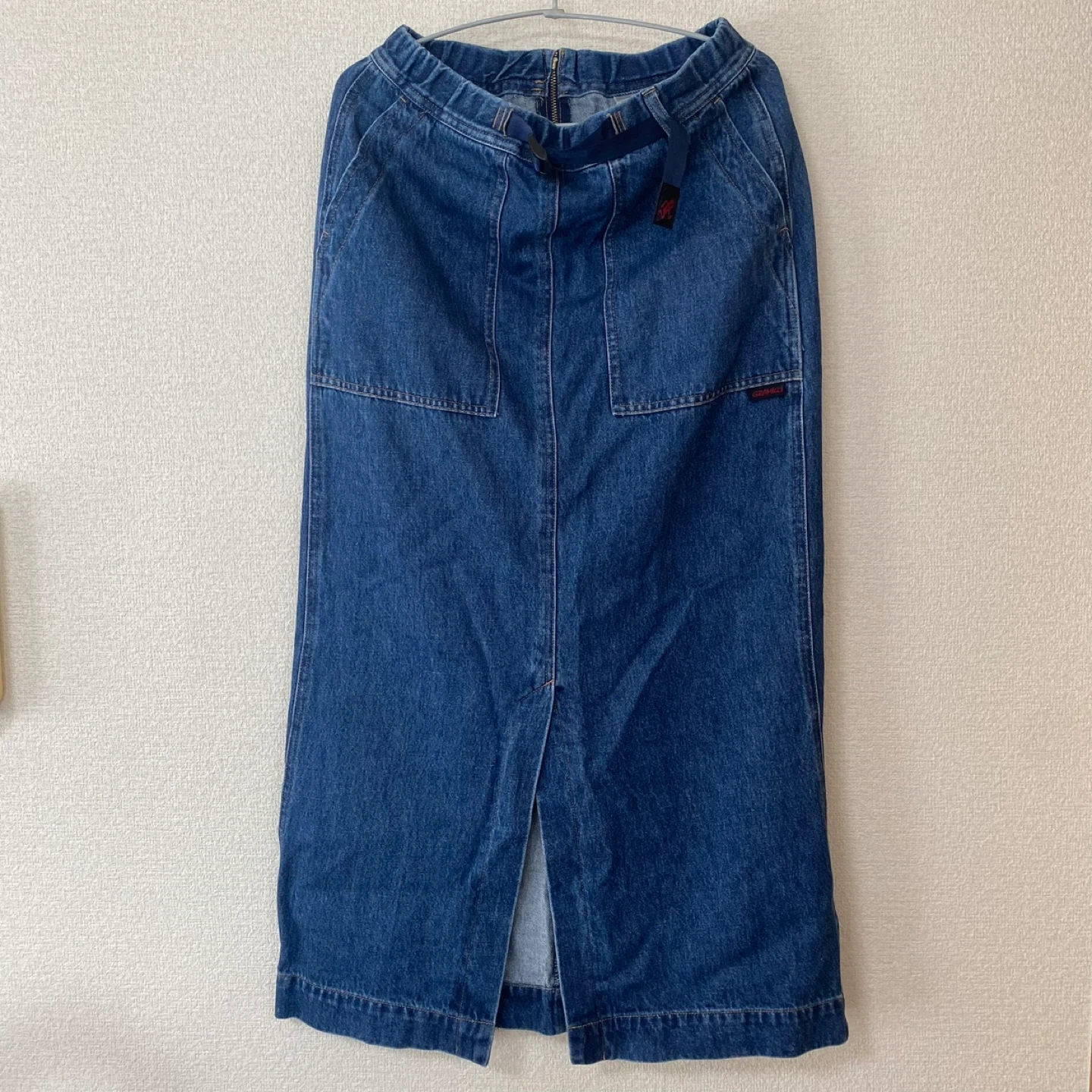 グラミチのデニムスカートです。 大人気グラミチのロングデニムスカートです! 13,200円(税込)で購入しました。 コットン100%を採用した11ozのデニム生地。 独特なハリ感・コシがあり、デニムならではのカジュアルな風合いをお楽しみいただける素材です。 季節を問わず、 一年を通して快適にご着用いただけます! ・耐久性が高く、ハリコシのあるタフな11ozデニムを使用したデニムスカート。 ・レングスは踝まであり、前中心に長めのスリットがはいったデザイン。 ・ウエストはゴム仕様で、楽に着脱できます。バックルとベルトはフェイク仕様。 ・バックには左右でデザインが異なるアシンメトリーなポケットが。 ・左ポケットにはフラップ付きでオリジナルのメタルボタンを使用しています。 ・ブランド:グラミチ ■表記サイズ(M) ウエスト 68〜74 ヒップ(直線) 94 総丈 87.5 ・色:デニムブルー ・状態:使用感少なめ ご不明点があればお気軽にご連絡ください。