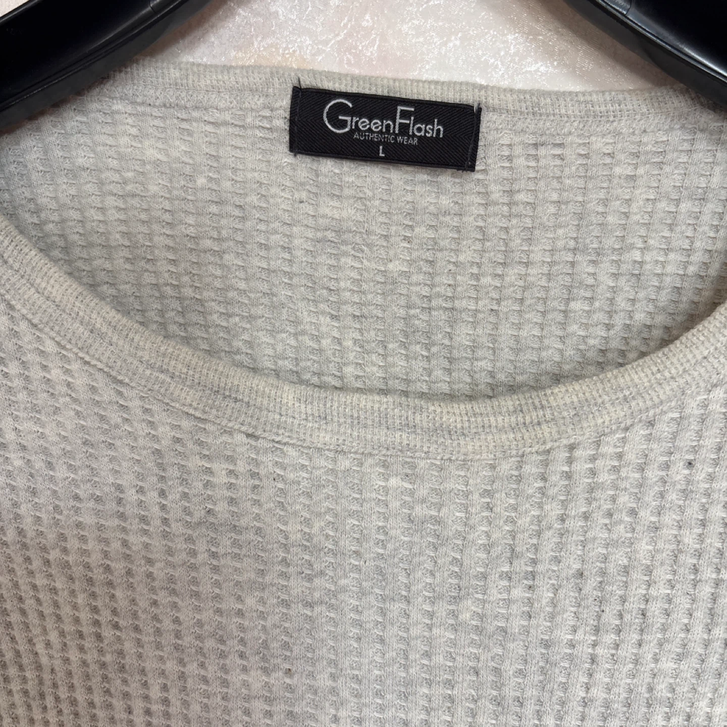 グリーンフラッシュの長袖カットソーです ・ブランド:グリーンフラッシュ ・サイズ:L ・色:ライトグレー ・素材:綿100% ・型番:NO.GFT-131 ・中国製 ・使用感少なめ ブランド: GreenFlash - サイズ: L - デザイン: ワッフル編み - カラー: グレー - 袖の長さ: 長袖 肩幅 46㎝ 身幅 55㎝ 腕の長さ 63㎝ よく伸びて着やすいです。 特に汚れなどありませんが、着用していたので中古品としてご了承のうえ、 ご購入お願い致します。 中古品であることご了承ください