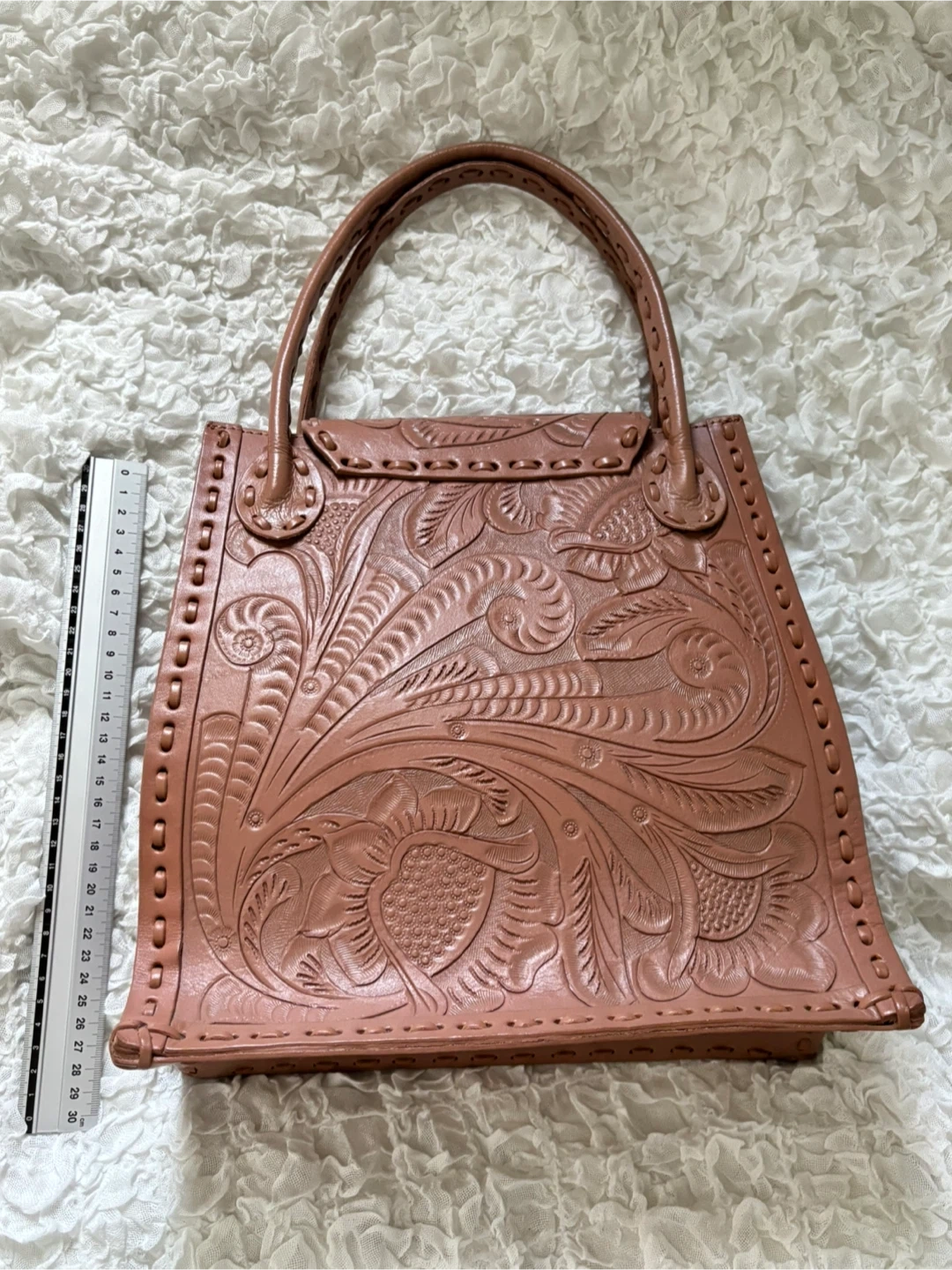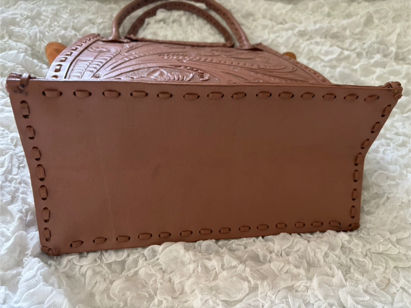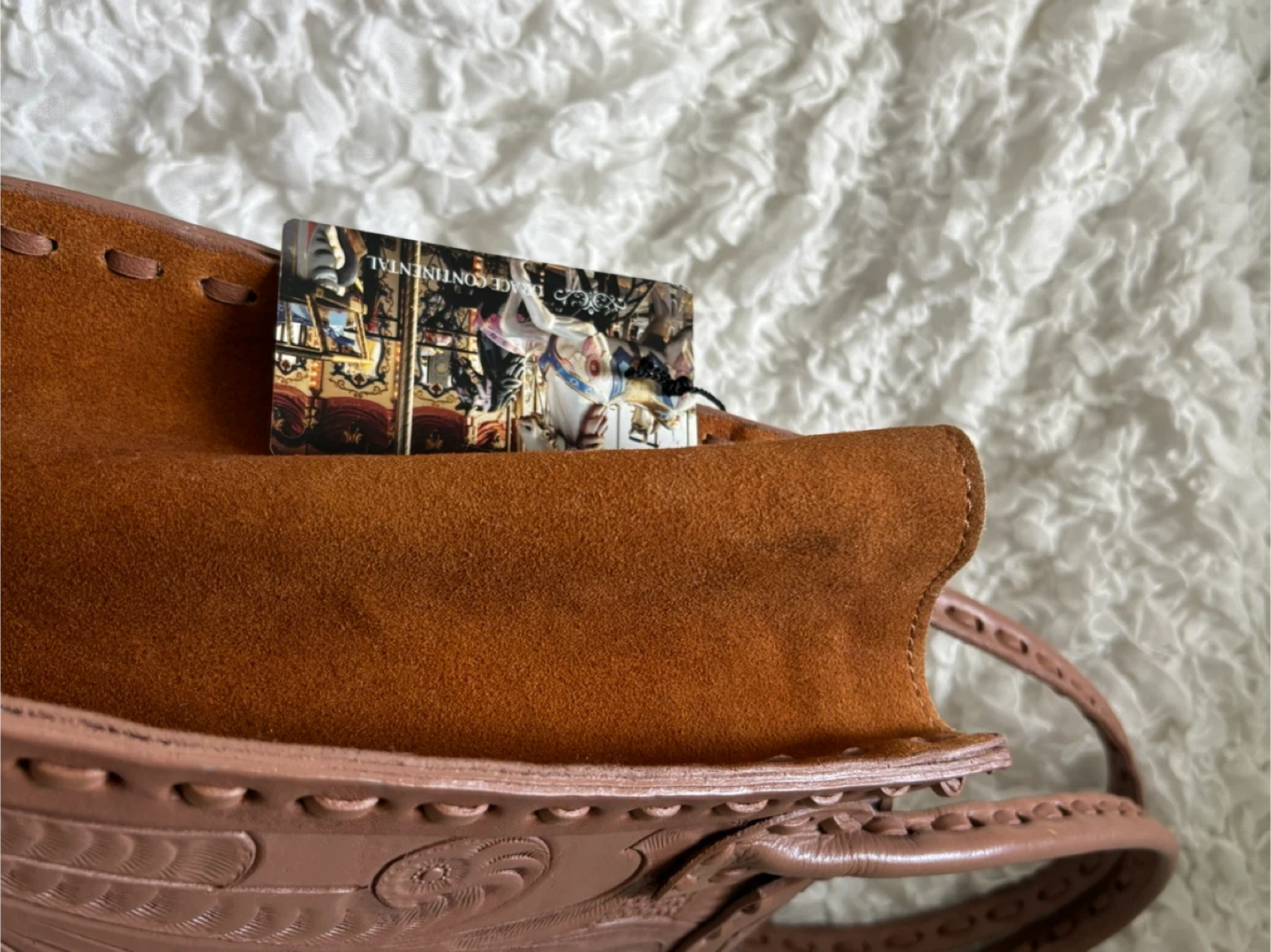 グレースコンチネンタルで購入したCARVING TRIBESの「カービングトラペーズS」でカラーはベージュ(ピンクベージュ系)です。 何度か使用したものですのでそれなりに小傷や汚れはありますがどれも使用していて目立つものではなく全体的に綺麗なコンディションが保たれているのではないかと思います。 ベタつきなし。 ハンドメイドの革製品、中古品なので神経質なかたはご遠慮下さい。