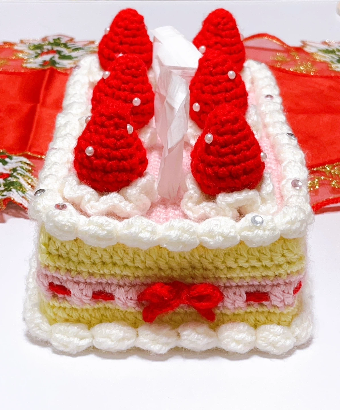 ⚠️ 他フリマアプリにも出品中の為、突然商品を削除する可能性があります ★出品理由★ 世界でたった1つの ケーキ型 ティッシュカバーです。 今後同じものを作る予定はありません。 12月22日に使用 保管が面倒な為、欲しい方居ればと思い出品しました ※現在柴犬の換毛期の為、コロコロ等の対策をして 毛1本も付かないように気をつけますが 絶対に無いとは言いきれないので、気になる方はやめといた方がいいと思います。 別角度のお写真欲しい場合は、お問い合わせ下さい。 ★大きさ★ 幅 26cm、奥行 15.5cm、高さ 12cm (クリームや苺等の装飾品込の大きさです) 幅230×奥行114×高さ55mmのエルモアを元に編んだので、それくらいの大きさのボックスティッシュならなんでも使えると思います ★毛糸★ 抗菌防臭のアクリル毛糸です ★値下げについて★ 3日間掛けて、苦労して作った為今のところ値下げする気はないですが…多少なら考えます。 参考元はありますが私が考えて作ったので、似たデザインの物は売ってない筈… ★受け渡し場所について★ 京王線(千歳烏山~新宿) 山手線(新宿~五反田) 井の頭線(明大前~渋谷) 上記に記載されている駅ならどこでも 受け渡し可🙆‍♀️ ⚠️注意⚠️ ※犬を飼っております。 アレルギーの方はお気を付け下さい。 ※素人が制作した為、神経質な方は お取引しない方が良いかもしれません。 ※返信が深夜になる可能性があります。 上記ご理解頂ける方のみご購入お願い致します。 ご質問あればお気軽にどうぞ! #クリスマス #ハンドメイド #ケーキ