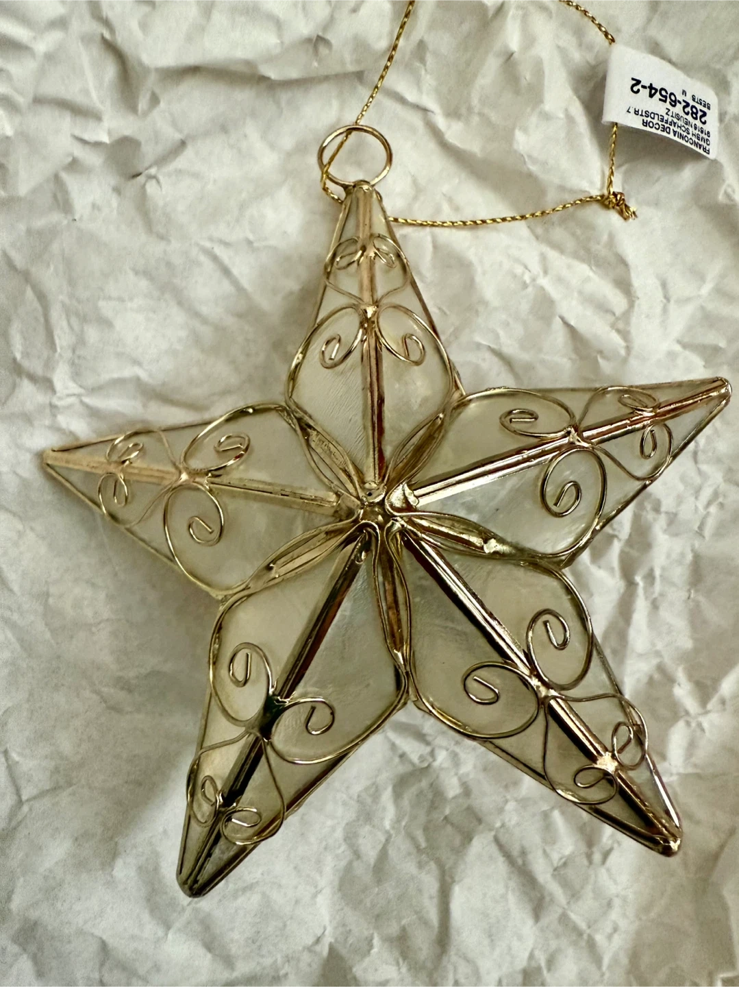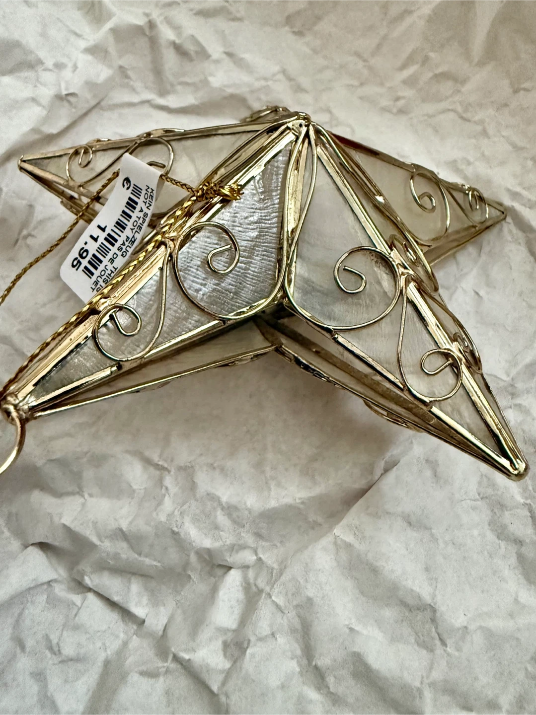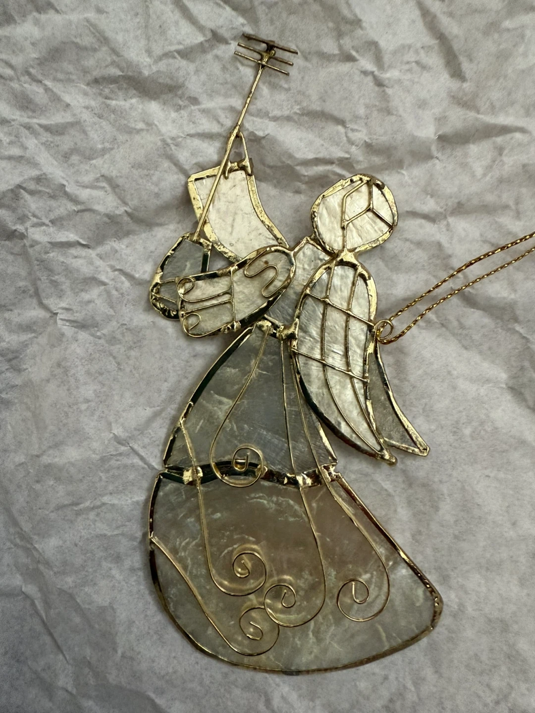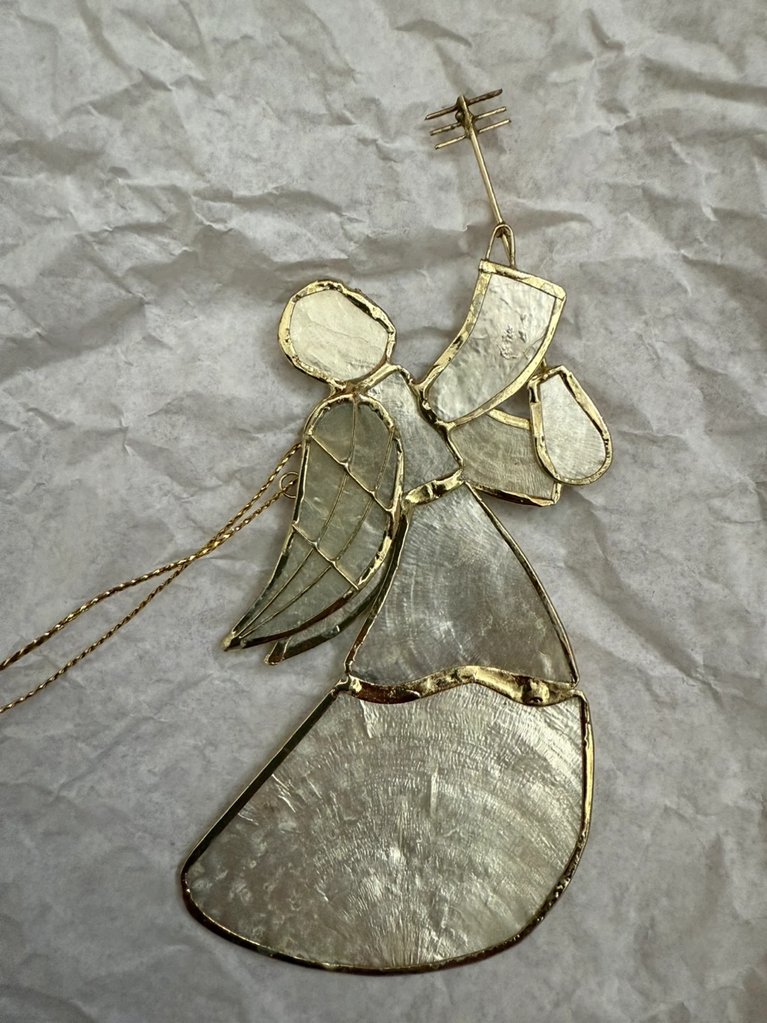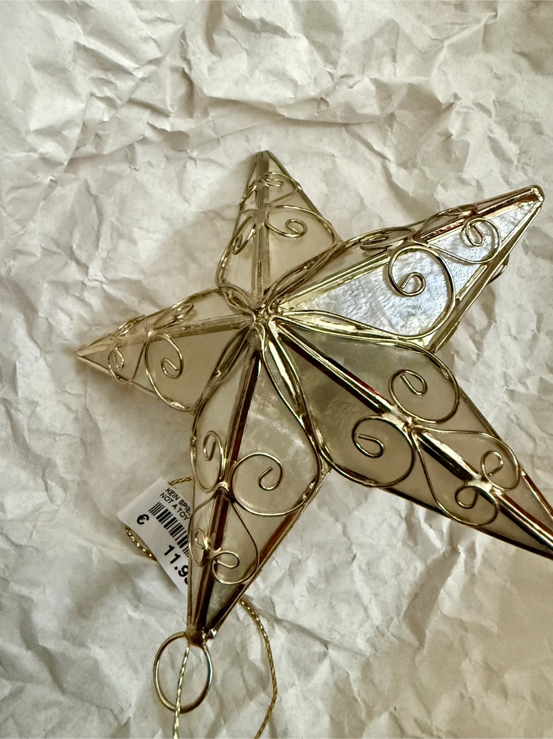 クリスマス オーナメントセットです ドイツ、ローテンブルクのクリスマスグッズ専門店Kathe Wohlfahrt (ケーテ ウォルファルト)の商品 2015年当時の価格で 天使7.95€ 星11.95€ でした。 気に入って購入したのですが、なかなか飾る機会がなく、箱に入れたまま保管しておりました。 今見てもとても繊細で綺麗なデザインだと思います。 飾る予定がないので、断捨離のため出品しました。 - サイズ: 天使型オーナメント  ステッキの先からの全長約14cm  ステッキを除く部分の全長約11cm - サイズ: 星型オーナメント リングを含む一番長い部分 全長約12cm - 素材: 金属とシェル - 付属品: オリジナルボックス付き 天然素材のため、購入時から小さなシミなどはありました。 一番はっきりわかるところで、写真3枚目の天使の肩あたりにシミあります。ご確認ください。 自宅保管品です。神経質な方はお控えください。 ご覧いただきありがとうございます。