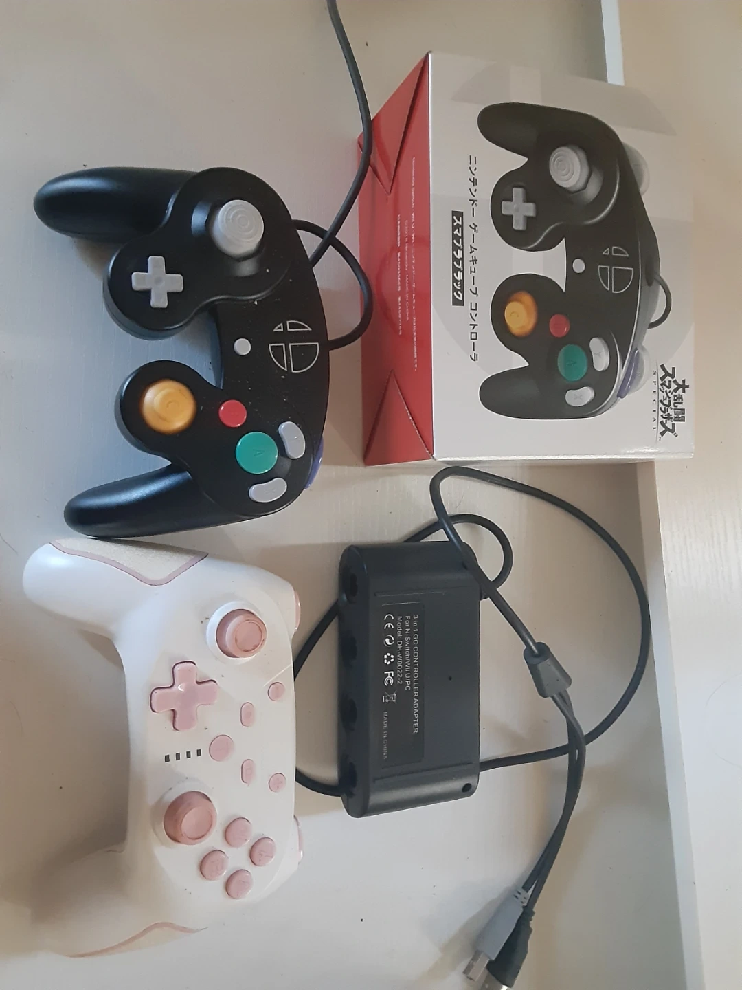 ゲームキューブ コントローラーのセットです。 ・黒色のコントローラー、アダプター、箱があります。 ・白色のコントローラーがあります。 中古品であることをご了承ください。