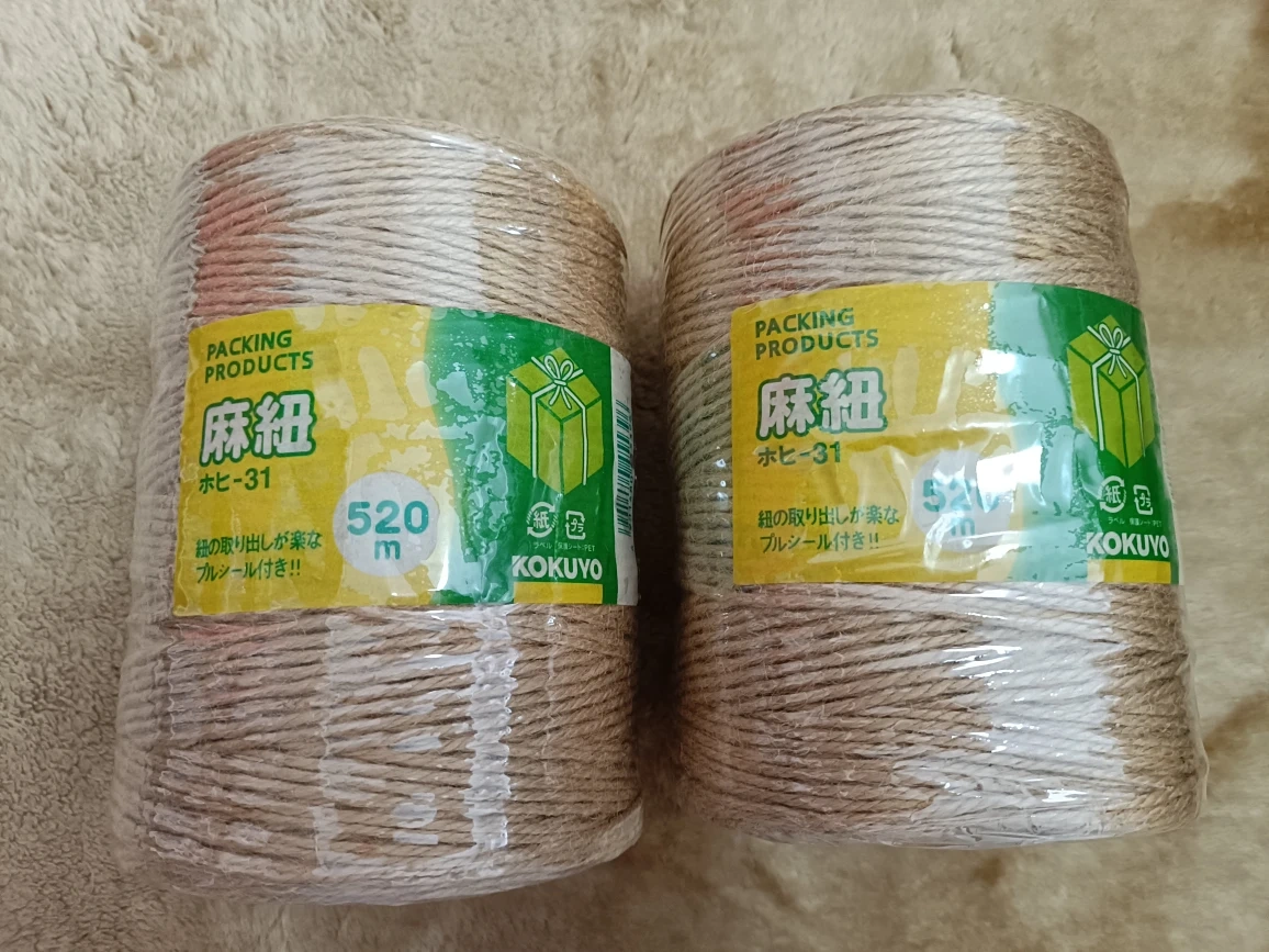 コクヨの麻紐2個セットです。 1つは未使用、もう1つは使い掛けです。長期間、自宅保管してましたので、そこも踏まえて、ご理解いただければと思います。 ・ブランド:コクヨ ・商品名:麻紐 ・型番:ホビー31 ・長さ:520m ・状態:未使用に近い