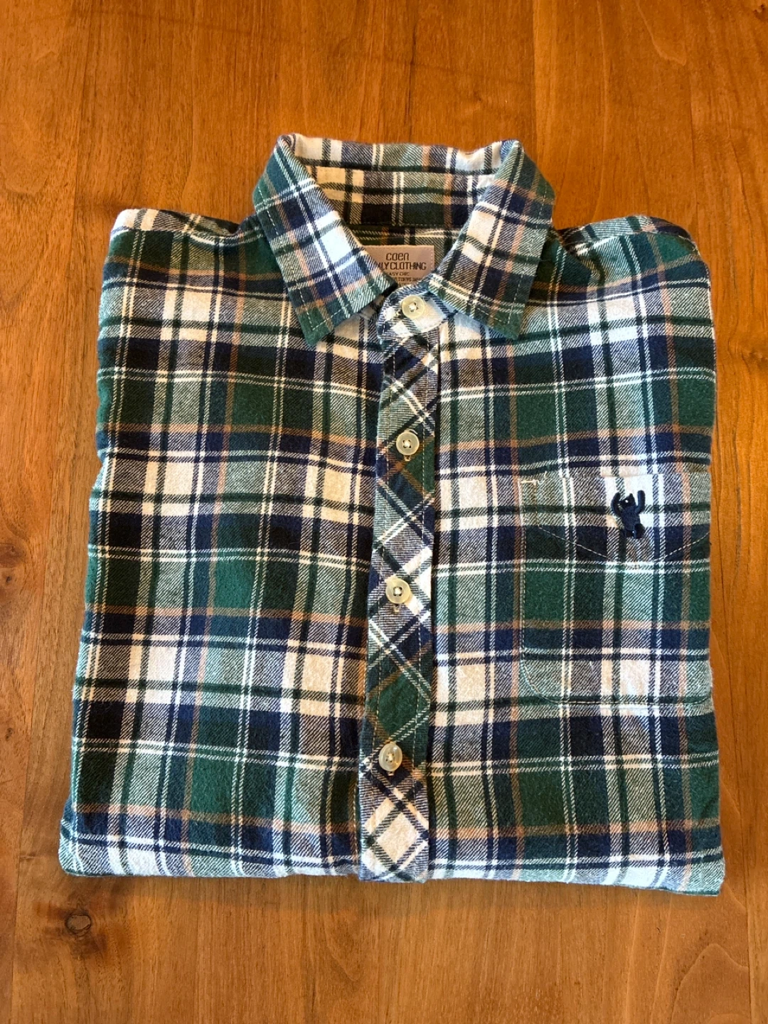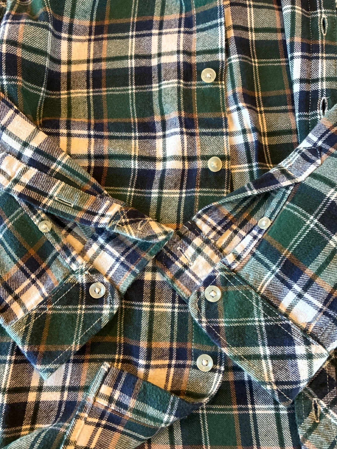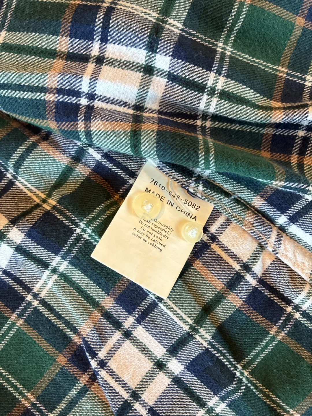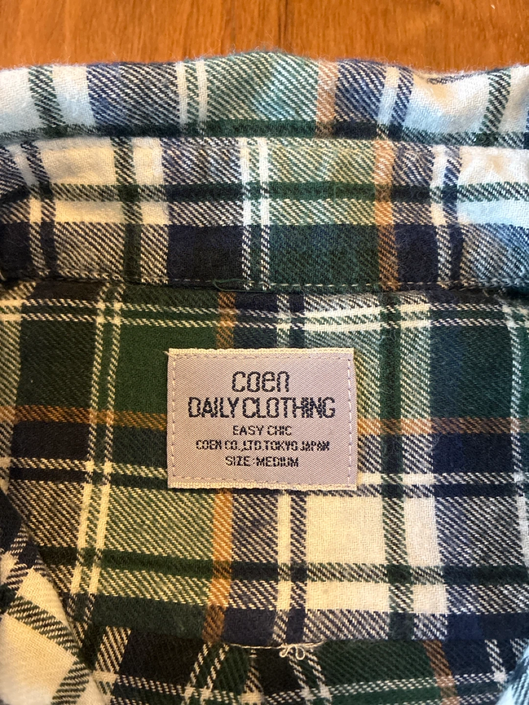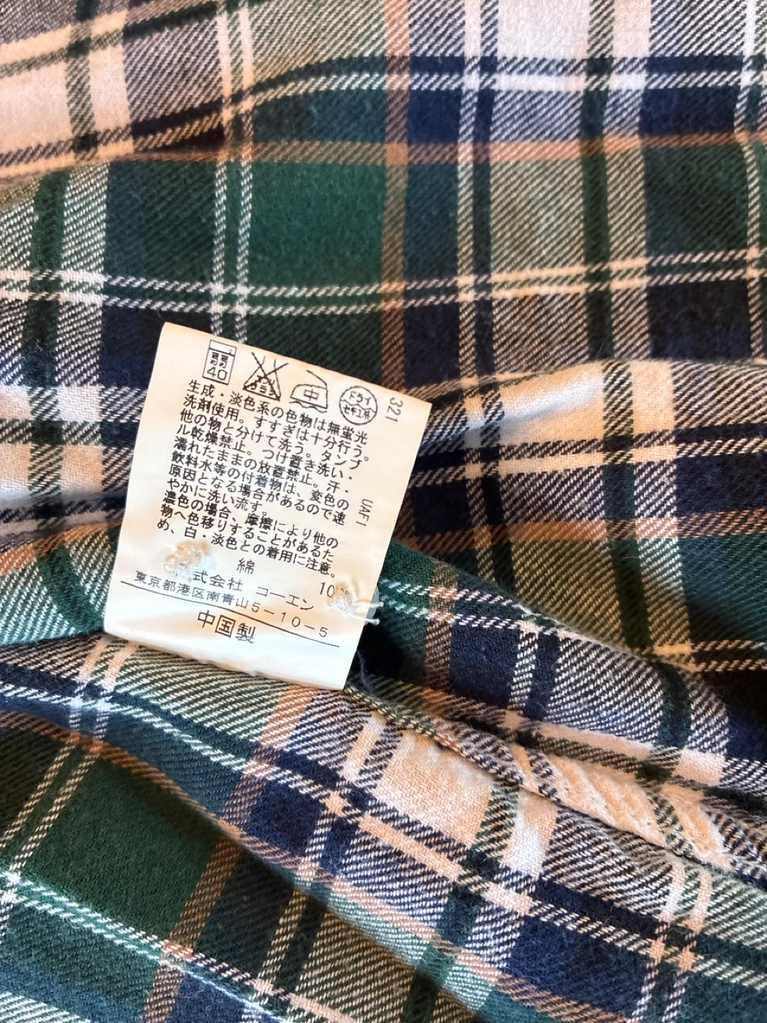 🟩チェック長袖シャツ🟩 中古品であること御了承ください 綿100%(予備ボタン付き) サイズ:女性Mサイズ ブランド:コーエン サイズが合わなくなったため出品します。 グリーンチェック柄なので合わせやすくておすすめです。