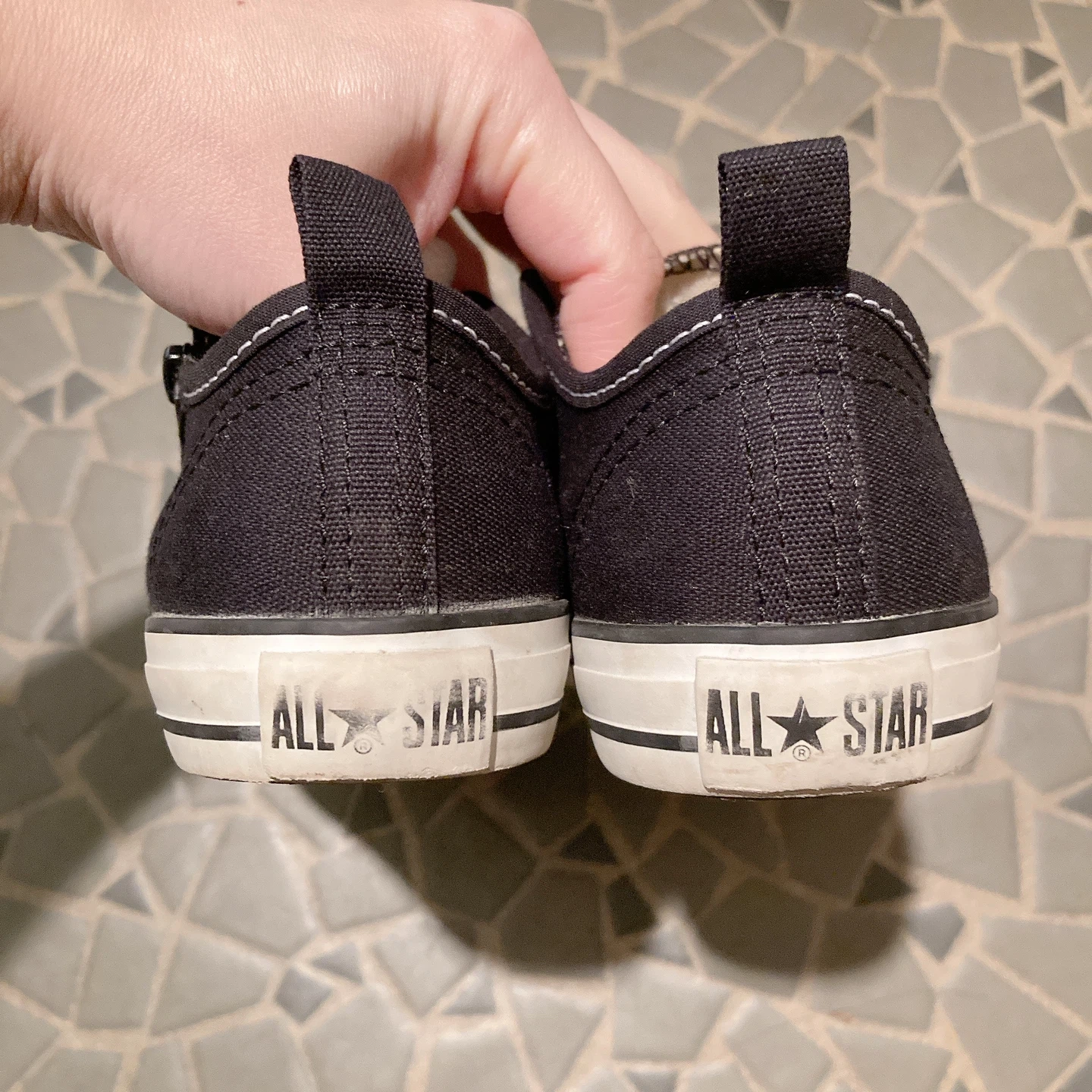 コンバースの黒のスニーカーです。 converse コンバース ALLSTAR オールスター キャンバススニーカー キッズ 18.0cm 黒色 目立った汚れや記名はありません。