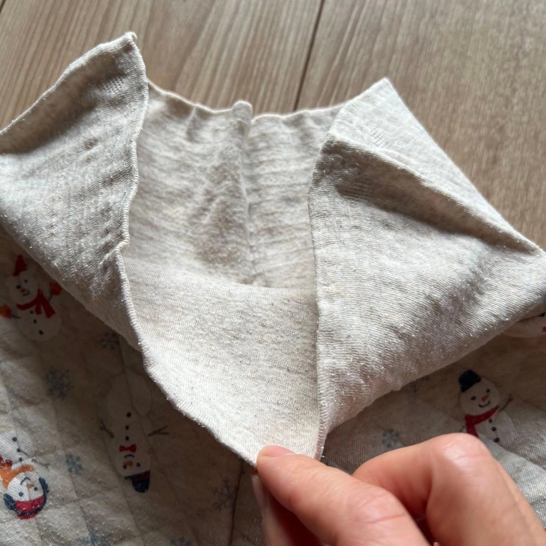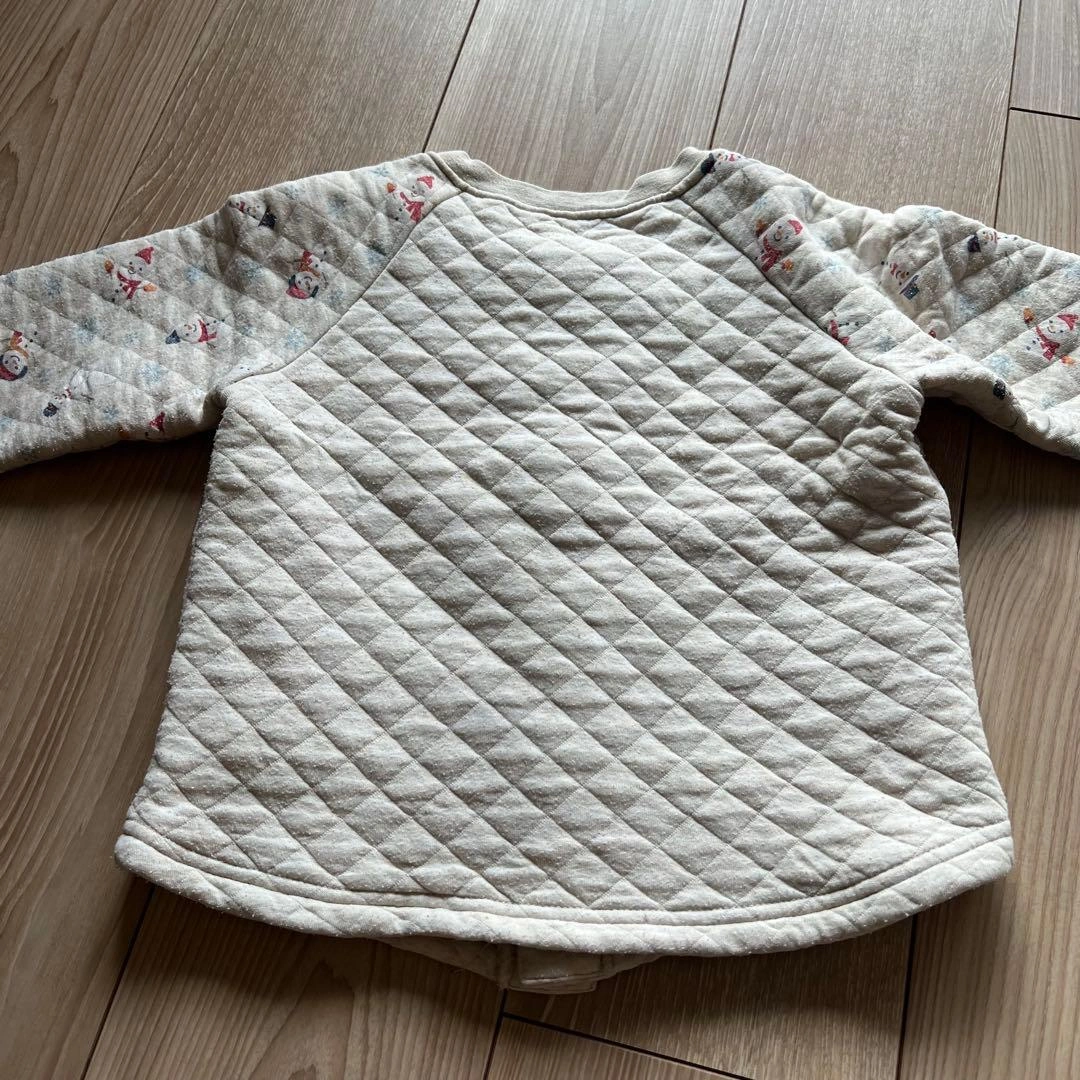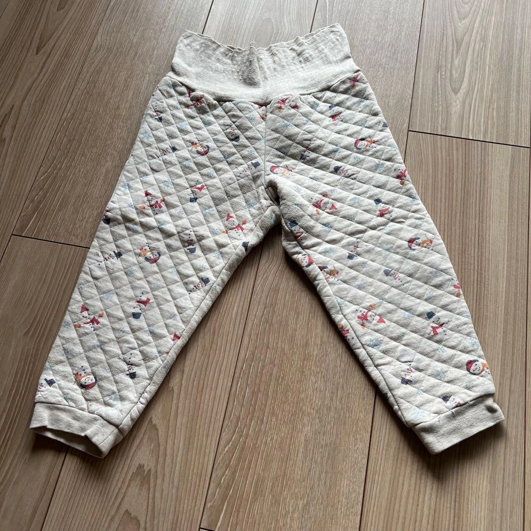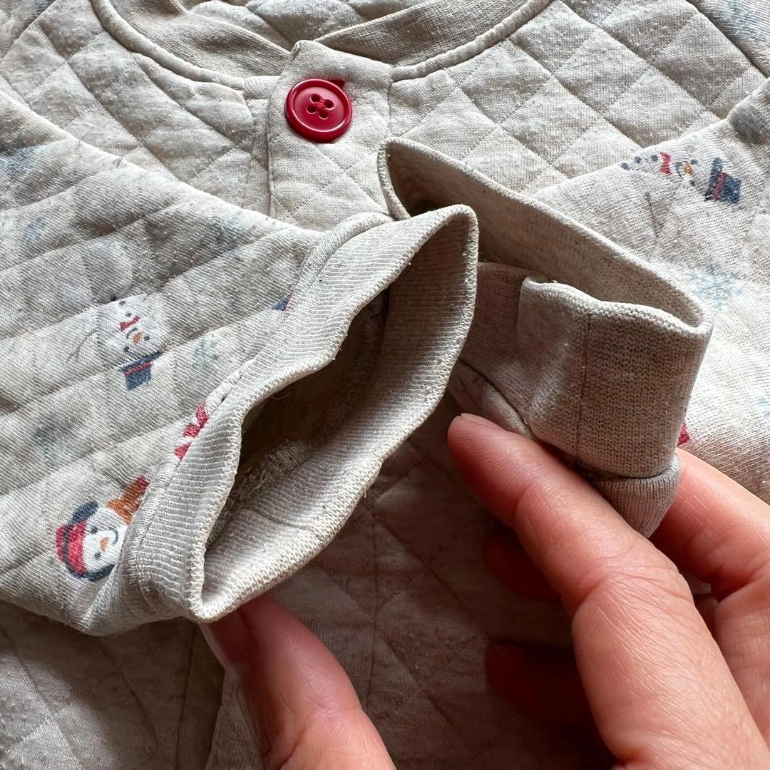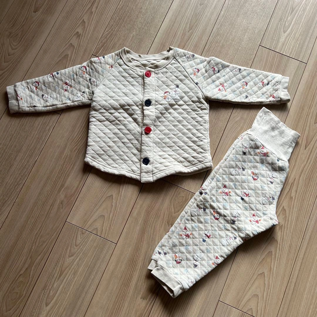 コンビミニ、キルティングデザインのアイボリーベビーパジャマです。ウエスト腹巻き効果のあるパンツとカラフルなボタンが特徴です。 - 色: アイボリー - デザイン: キルティング - ボタンの色: 赤、青、黒 - パンツのデザイン: ウエスト腹巻き効果 - サイズ: 100㎝ うちの子が痩せているせいか、パンツの腹巻きが少しゆるく、多少ずり落ちる気がします。 ご希望の方はお気軽にご連絡ください。