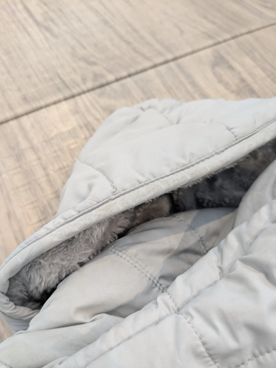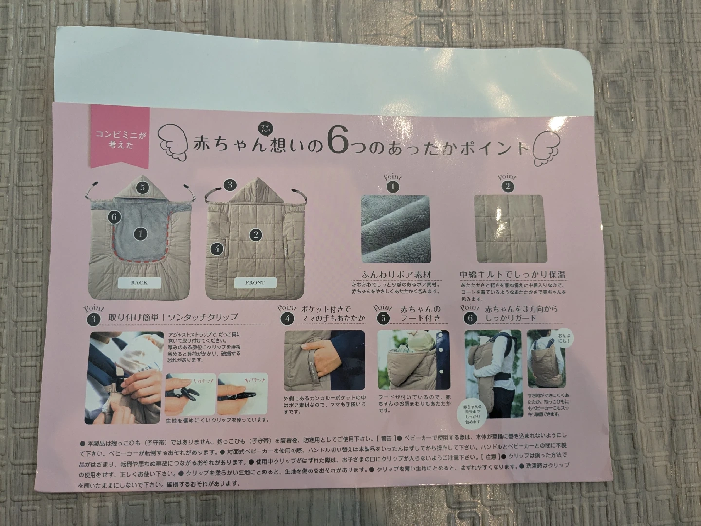 コンビミニのラップホールドです。 寒い季節、抱っこ紐に被せたり(おんぶでも)、ベビーカーに被せたりして使えます。 【情報】 ブランド:コンビミニ 中綿キルト 裏ボア 【状態】 全体的には綺麗ですが多少使用感あり。 ・薄い汚れがあります。写真4(内側両角)、5枚目(フードふち) ・紐部分に安全ピンで止めたあとがあります。写真6枚目 ご不明点があればお気軽にご連絡ください