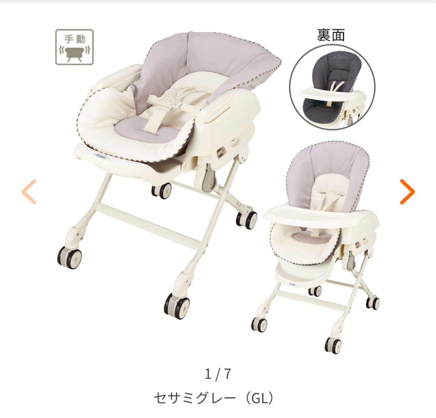 ご覧いただきありがとうございます。 使用頻度は少なかったため、状態は良いです。 寝かしつけや離乳食時期のハイチェアとして使用していました。 定価 28,600円 ◎コード/カラー 116404 セサミグレー(GL) ◎サイズ ハイ:W520×D630~870×H690~1020mm ロー:W520×D820~880×H410~740mm ◎荷重制限 8kg [対象] 0ヶ月 ~ 48ヶ月