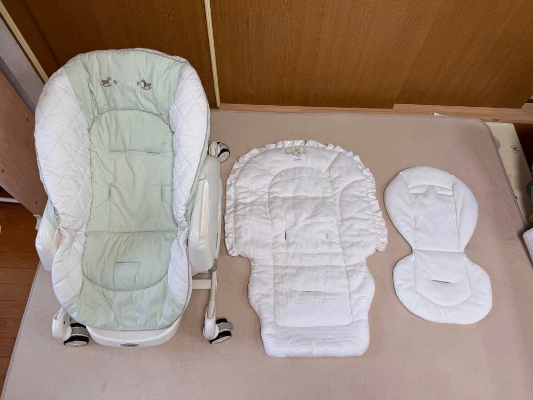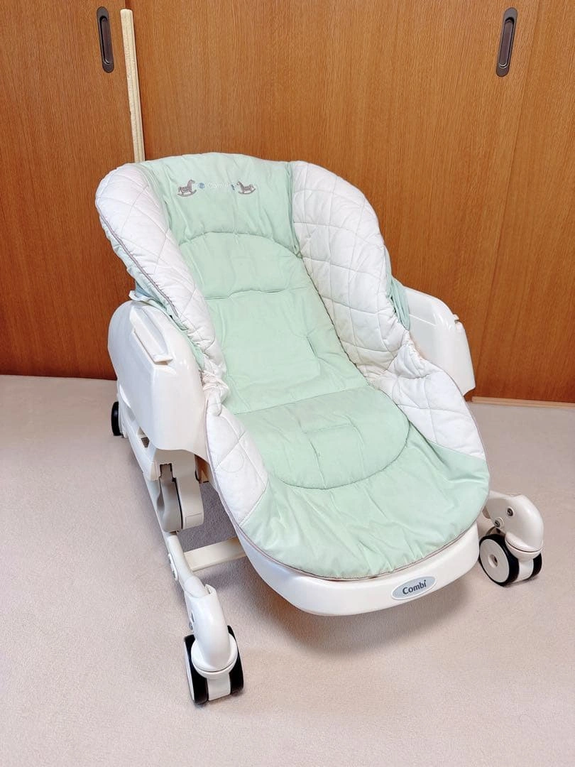 子供2人に使いました。 6年前に中古で購入し、寝返り前の4ヶ月くらいまでベビーベッドのような形で使用しました。 ベルトは左側のみなくなってます。 ベビーベッドみたいに使うならまだまだ綺麗です。 お風呂の時などは脱衣所までこのラックを持っていき待機場にして重宝しました。 新生児から4才まで使用可能な、4輪キャスター付きのミルキーグリーンのベビーロック ネムリラ エッグショックです。 - ブランド: コンビ - 商品名: ベビーロック ネムリラ エッグショック CE ミルキーグリーン - 対象年齢: 新生児〜4才 - キャスター: 4輪キャスター搭載 - カラー: ミルキーグリーン 場所は千代田区もしくは江東区になります。 持っていく事も可能ですが、¥1000追加で23区内限定です。 ご覧いただきありがとうございます。