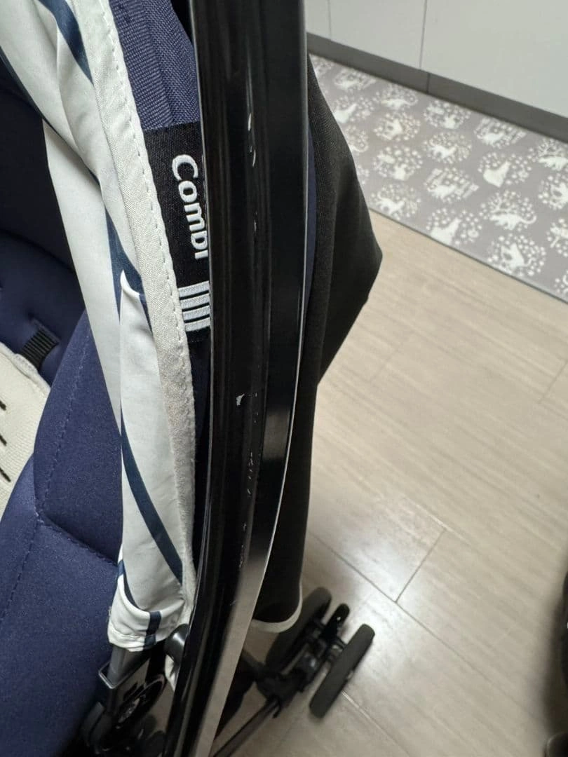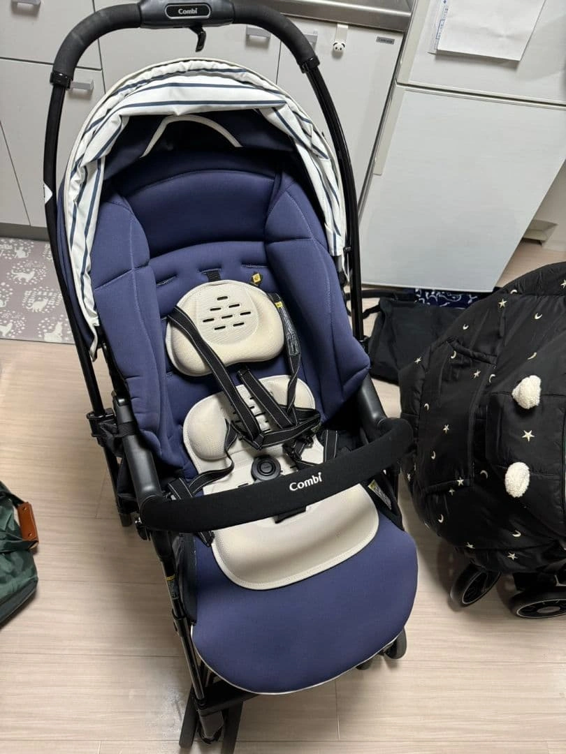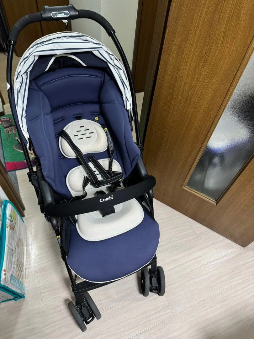 折りたたみ可能なCombi両対面ベビーカーです。 - ブランド: Combi - カラー: ネイビー - タイプ: ベビーカー - 特徴: 折りたたみ可能、両面(背面対面可能) - 安全機能: 5点式ハーネス - 販売年数: 2017年7月 ご覧いただきありがとうございます! 半年前に友人から譲り受け、5ヶ月ほど使用しました。 使用感はありますが、まだまだ乗れるかと思います。 対面では少し押しづらい仕様になっています。こちらは元からです。 ■夏の暑さやホコリから守る「ハイシート53cm」 ■リクライニング 125°~170° ○ハンドル両面式 ◎カラー/ネイビー(NB) ■使用期間/生後1ヵ月~36ヵ月頃まで ■製品安全協会A型SG合格品 ■サイズ/開:W480×D810~900×H995~1030mm 閉:W480×D345×H975mm) ■重さ/4.6kg ご希望の方はお気軽にご連絡ください。