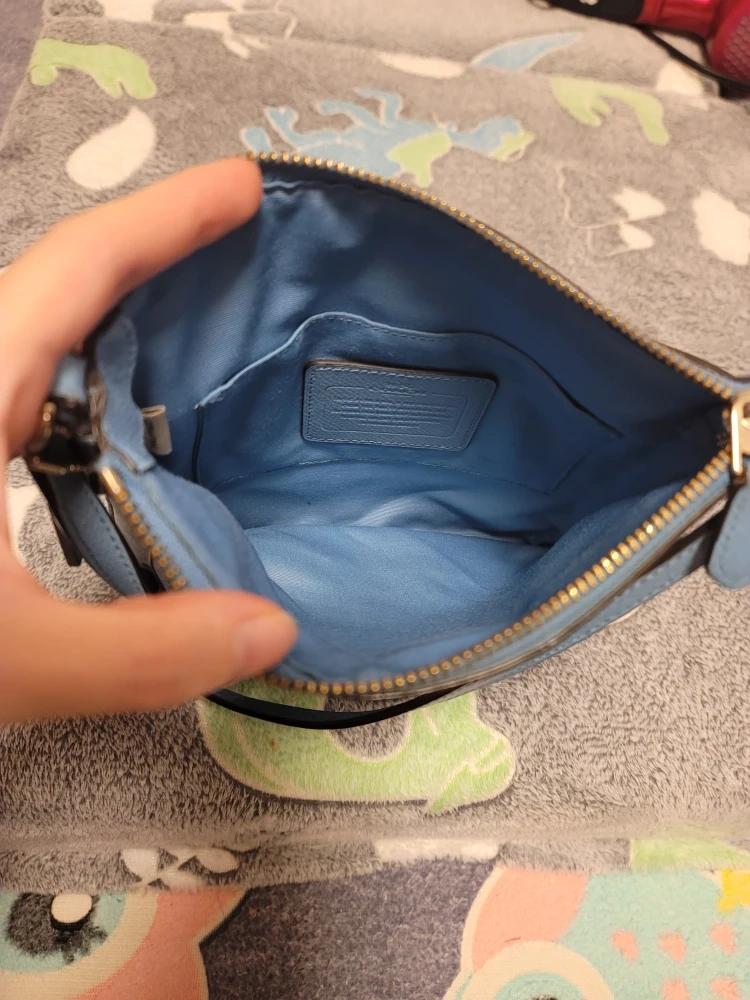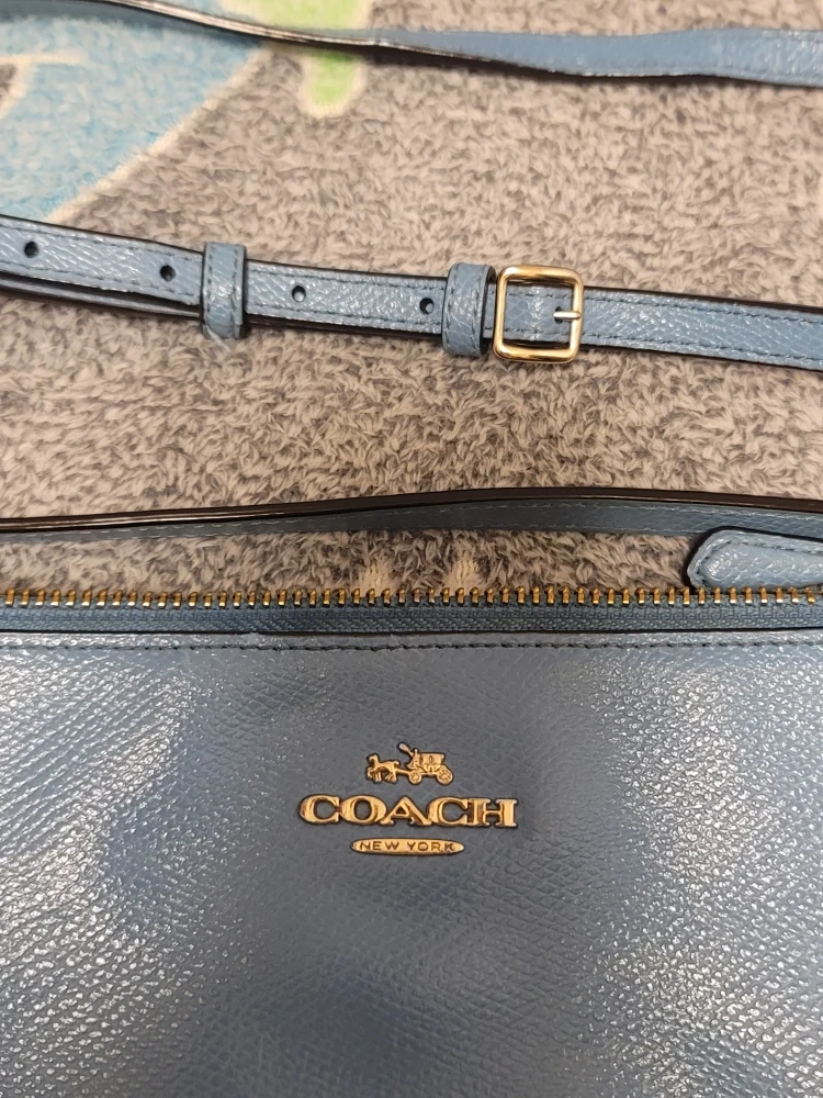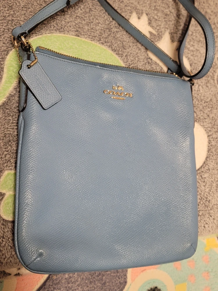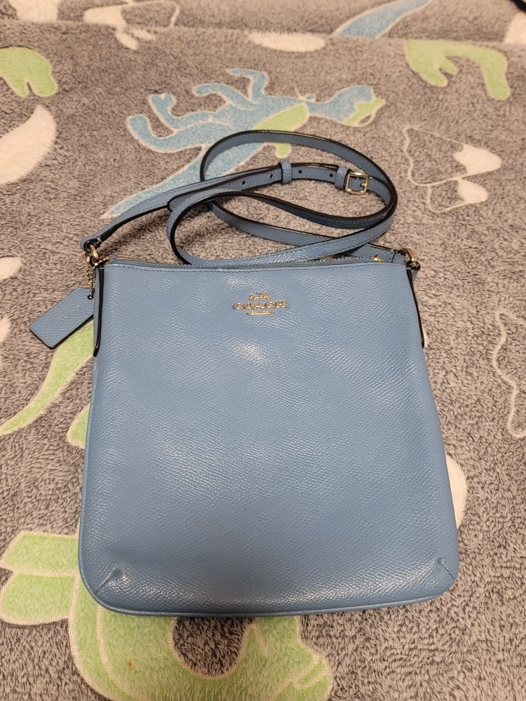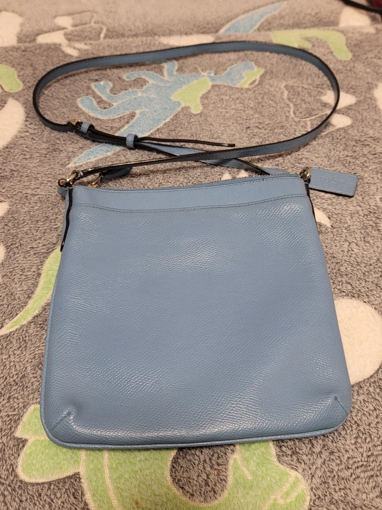 コーチのショルダーバッグです。 ・色:ライトブルー ・ブランド:コーチ ・使用感少なめ ・ショルダーベルトの長さ調整可能 ・内側にポケットあり/外ポケット付き 中古品であることをご了承ください。