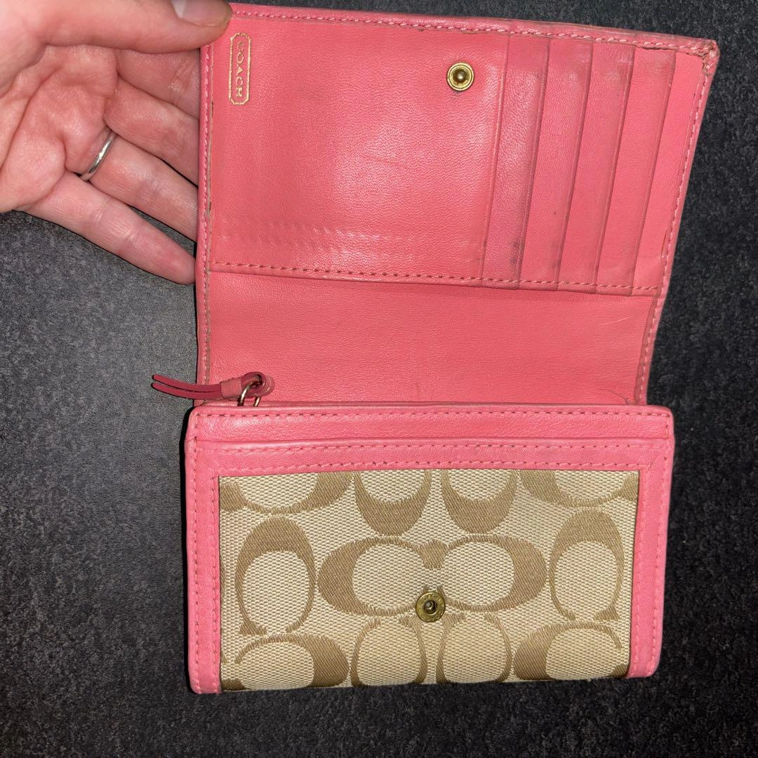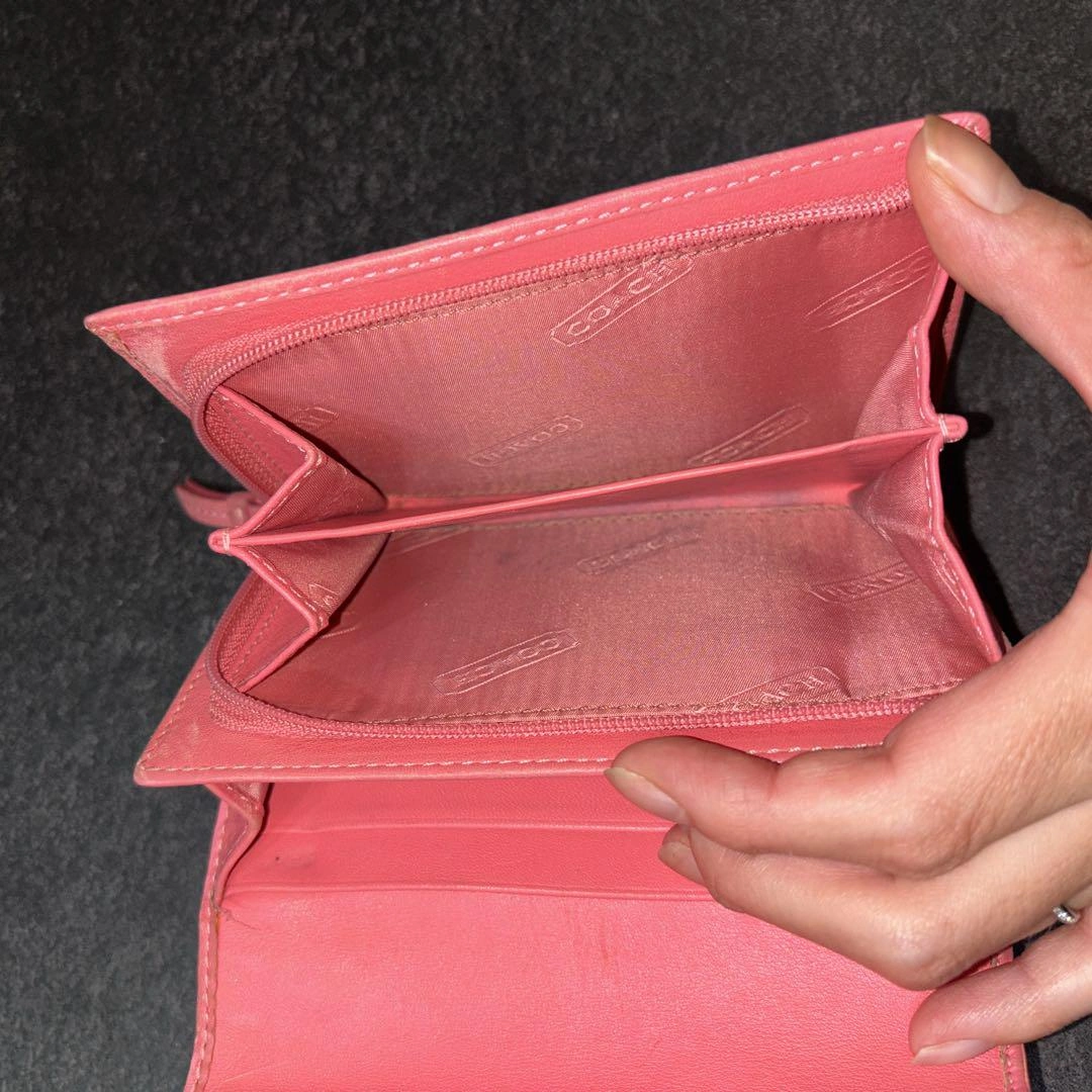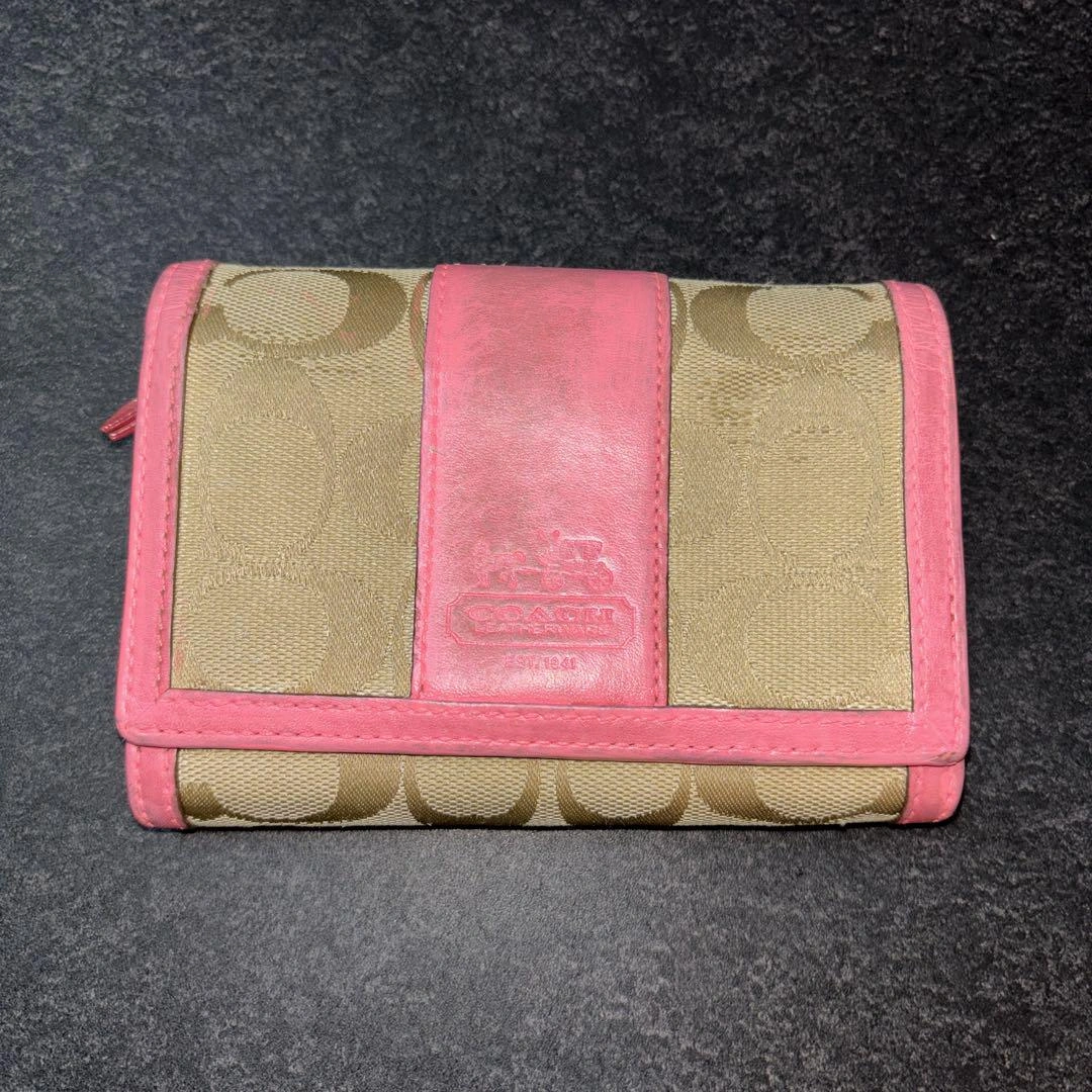 COACH(コーチ)のシグネチャー柄、ピンクカラーの二つ折り財布です。落ち着いた色合いと上品なデザインが特徴です。 カードポケットが多く、コンパクトながら収納力があります。うっすら汚れがありますが、シグネチャー柄は比較的綺麗で、中もしっかりしているので、まだお使いいただけると思います。 【ブランド】COACH(コーチ) 【カラー】ピンク×ベージュ 【仕様】二つ折り財布 / カードポケット / 小銭入れ / お札入れ 【状態】やや傷や汚れあり ご希望の方はお気軽にご連絡ください。