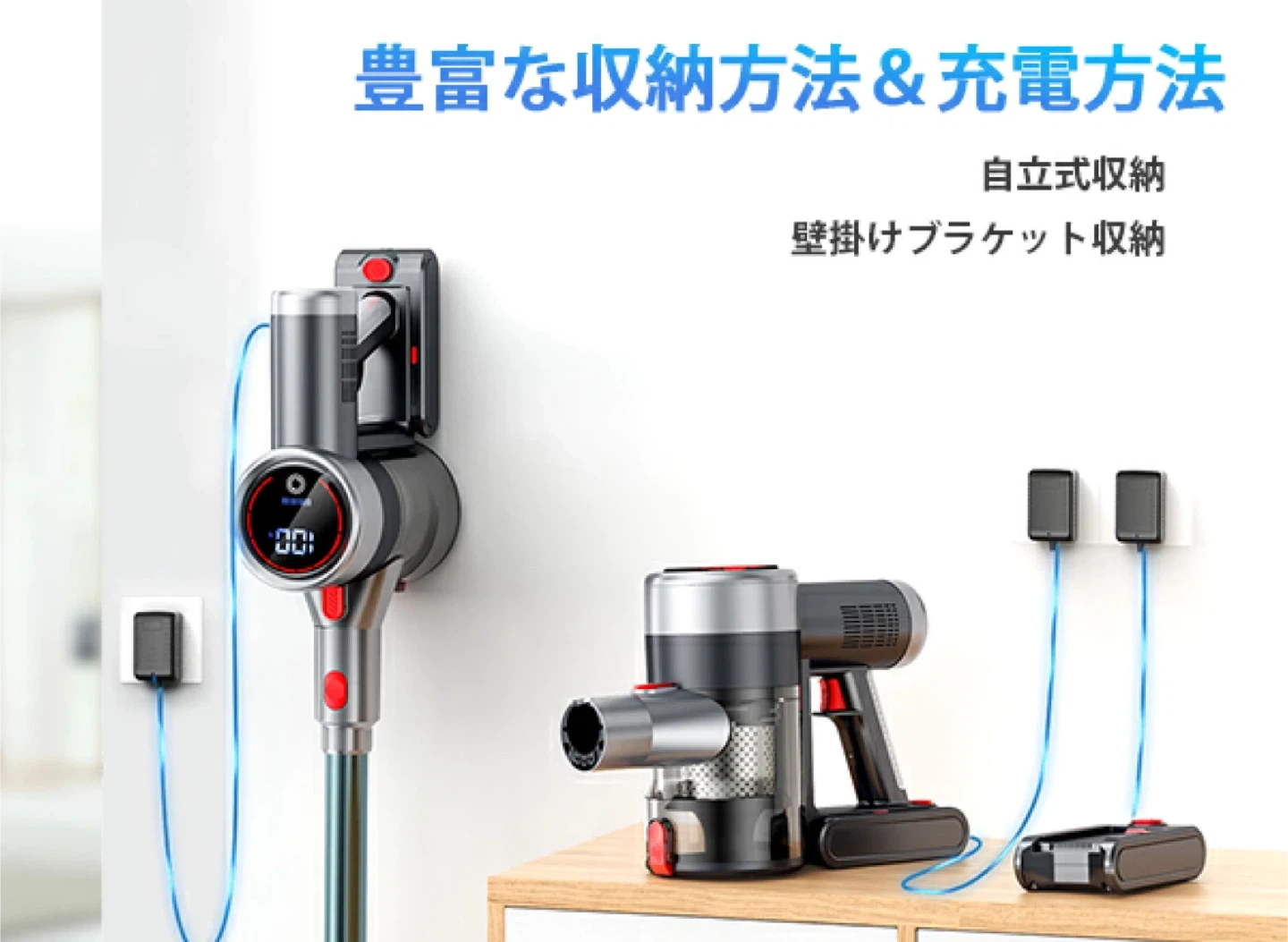 コードレス掃除機サイクロン式 550W3段吸引力 LED液晶ディスプレイ