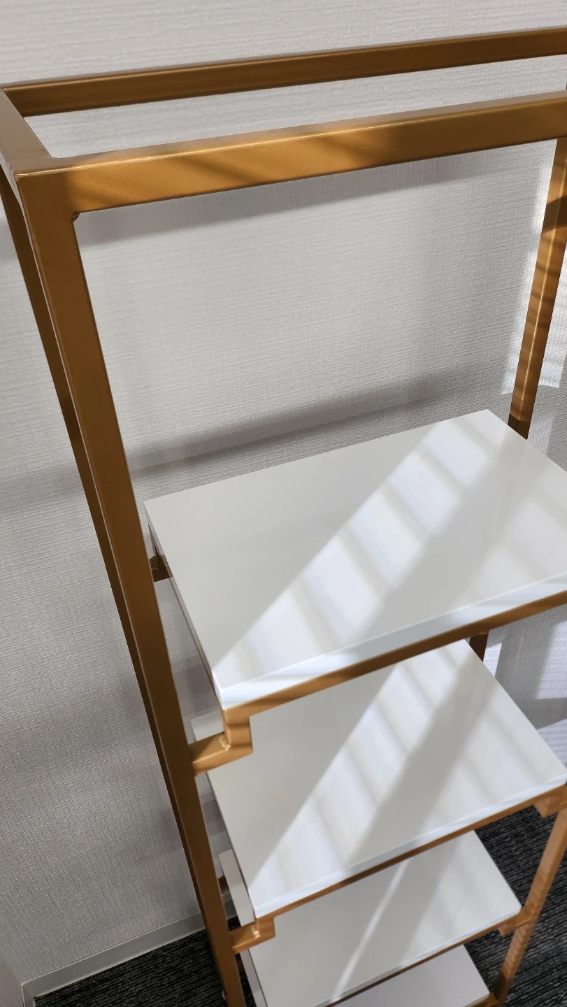 ディスプレイ 棚 スリム 4段 幅40×奥行20×高さ131-132cm 飾り棚 オープンラック ディスプレイ ラック オープン シェルフ キッチンワゴン マルチワゴン サイドワゴン インテリア おしゃれ 収納 サロン エステ ネイル 2年前に購入してオフィスに置いたので特に目立つ汚れなどはありません。 ・色:ゴールド、ホワイト ・段数:4段 ・状態:目立つ傷や汚れなし 中古品であることをご了承ください。