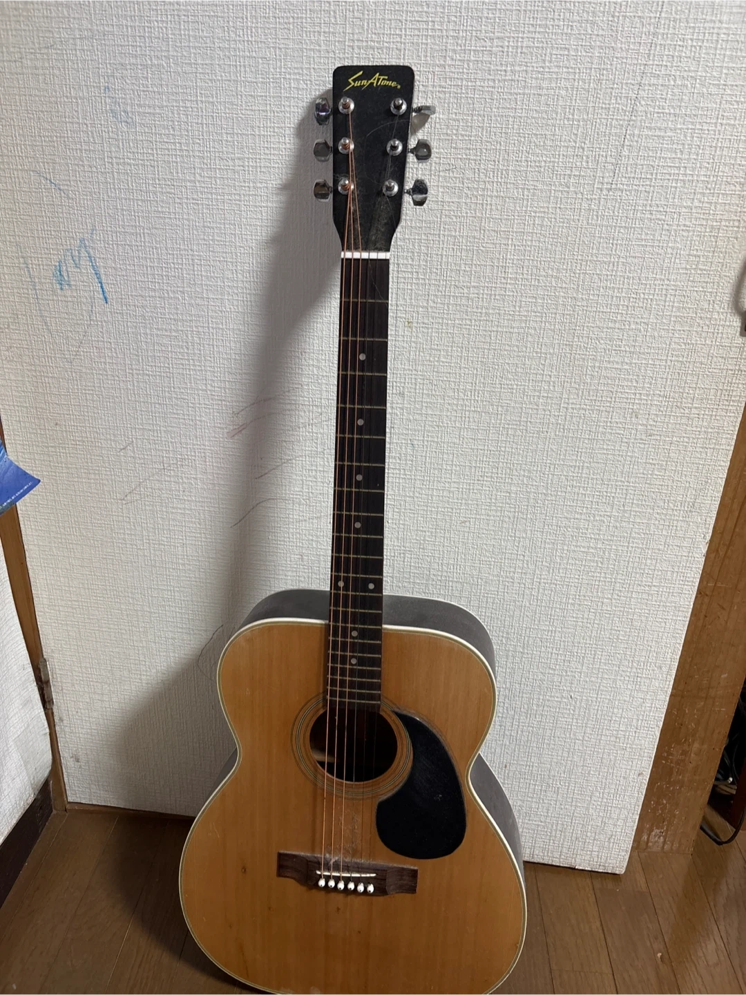 ギターです。 ・ブランド:不明 ・種類:アコースティックギター ・色:木目調 中古品であることをご了承ください。