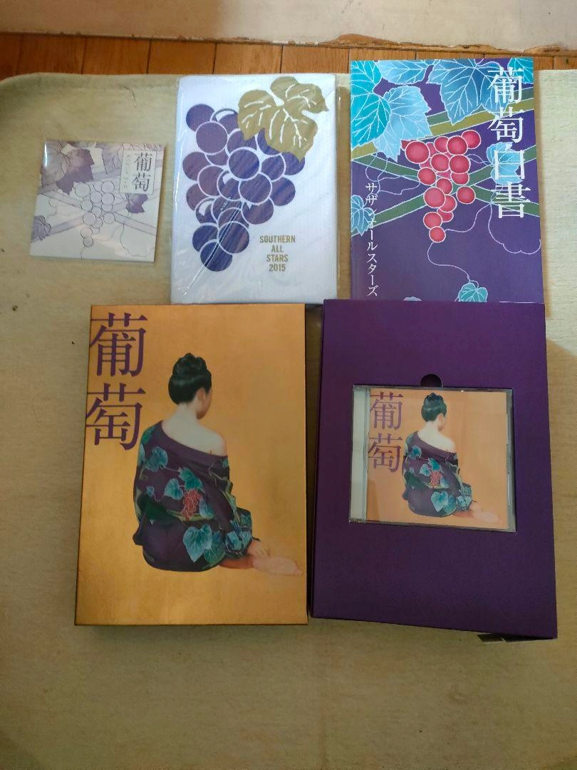 サザンオールスターズ、葡萄の初回生産限定盤です。 付録のTシャツとDVDは未開封です。 ピースとハイライト初回生産限定盤のポンチョ(CDなし)と40周年記念ポスターもお付けいたします。ご希望の方はお気軽にご連絡ください。
