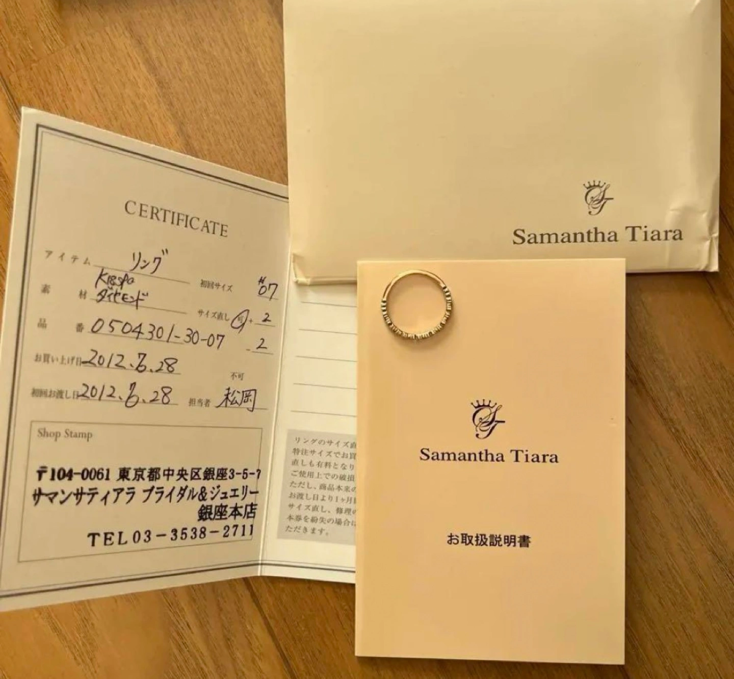 サマンサ ティアラのプリティエタニティリング 7号 (サイズ調整は一度もしていないです。) ピンクゴールド ショップカード お取り扱い説明書付き です。 購入は銀座店です。 2ヶ月くらい着用しましたが、その後使用せず保管していました。 ピンクゴールドの通常サイズは現在販売がないので、とてもレアです。 日本人の肌に馴染みやすく、つけやすいカラーです。 アップ写真が上手く撮れなかったので、色違いの写真を公式より使用しました。5枚目。 購入時は10万円近くしていた記憶があります。 目立った傷や汚れはないと思いますが、素人検品のため見落としがある可能性もあります。