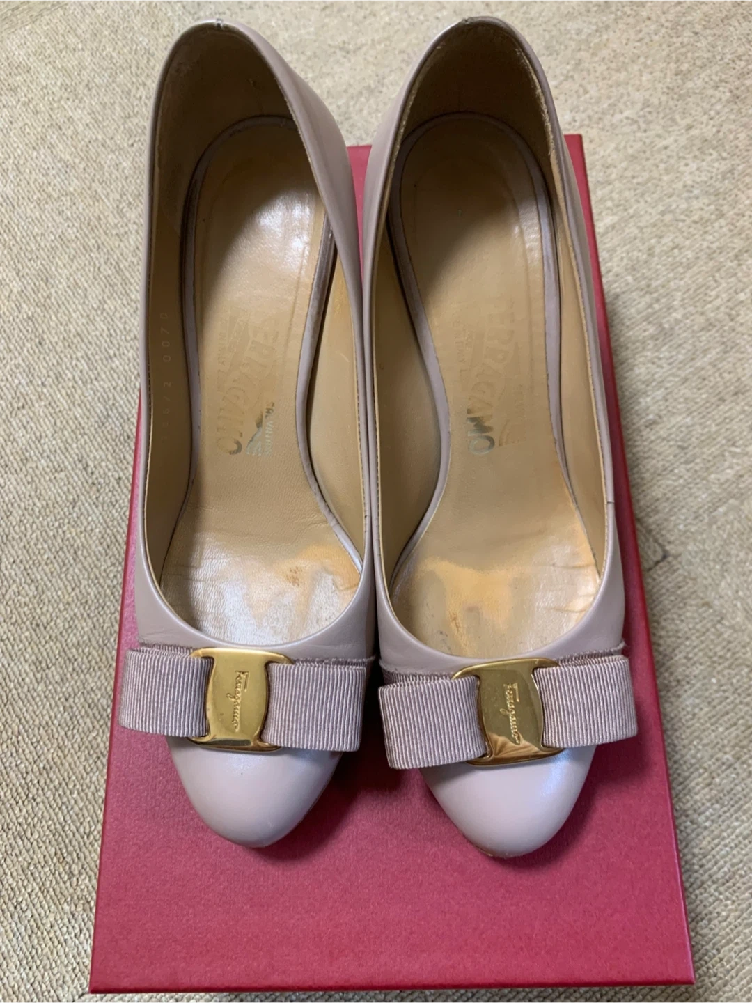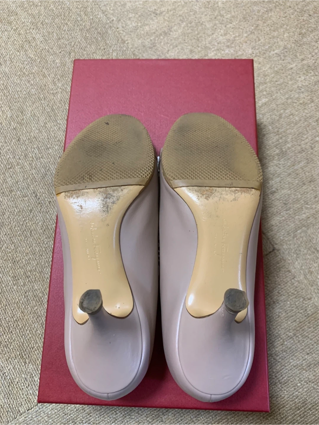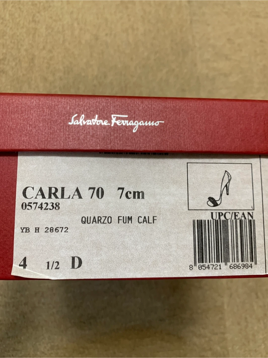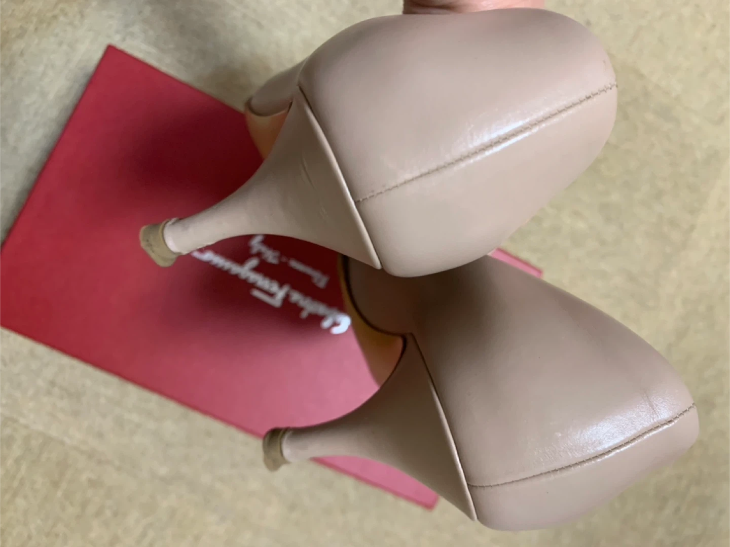サルヴァトーレフェラガモのパンプスです。 渋谷東急本店フェラガモブティックにて購入。 【情報】 ブランド:サルヴァトーレフェラガモ サイズ:4 1/2 D カラー:QUARZO FUM CALF モデル:CARLA 70 7cm 型番:0574238 【状態】 優しい色合いの上品なカーフのパンプスです。大好きで大切にしていました。靴底前半面は滑らないようラバー張替済です。サイズが合わなくなったため出品致します。宜しくお願いします。 【付属品】 箱、保存袋、カード 中古品であることをご了承ください。