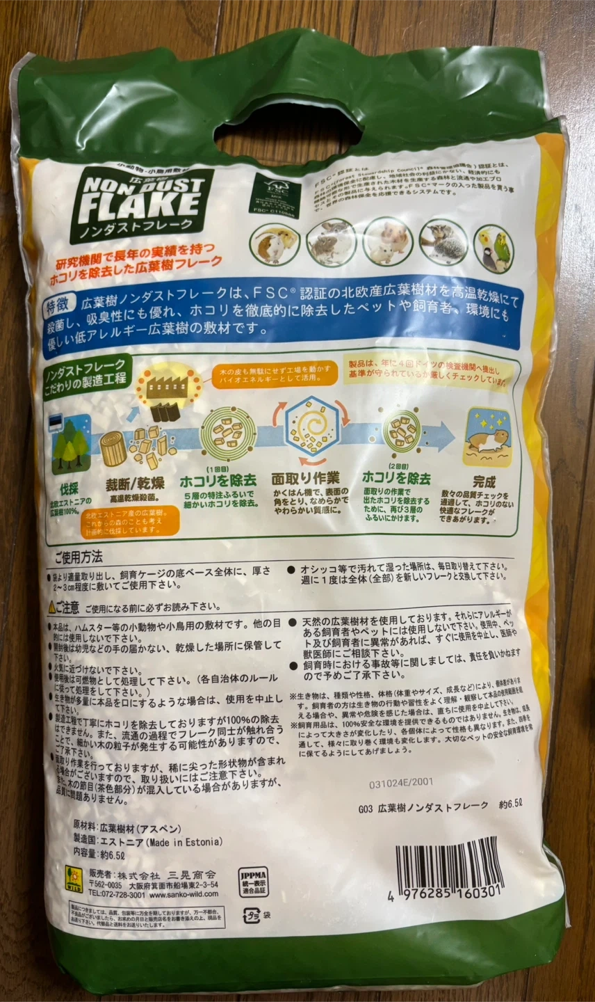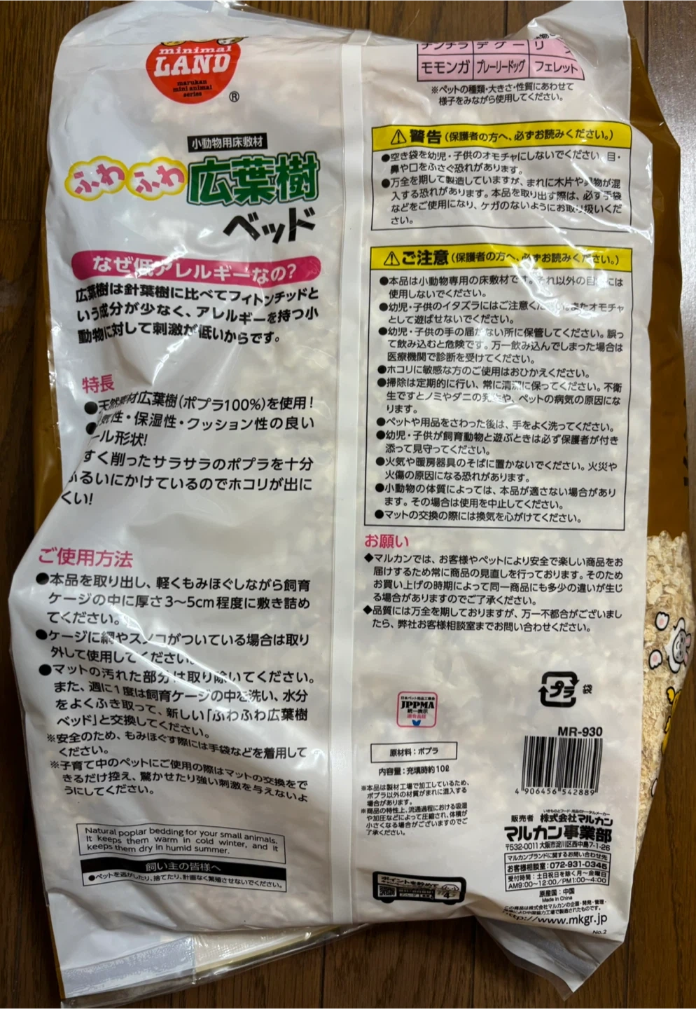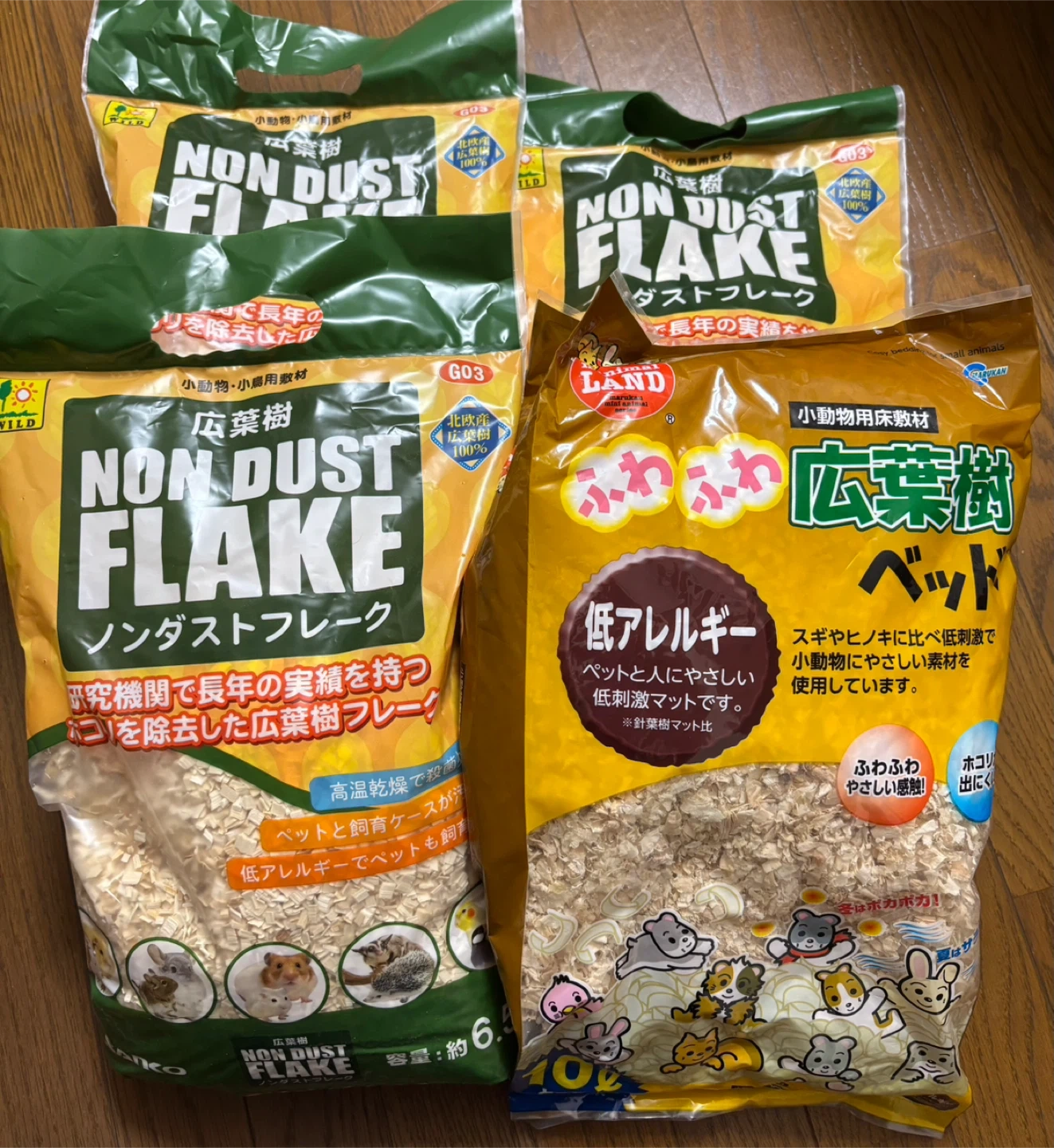 小動物用床材のセットです。 ・サンコー ノンダストフレーク3袋 ・マルカン 広葉樹ベッド1袋 未使用ですが、3ヶ月前に購入し自宅で保管していました。 ご自宅近くまでお届けすることも可能です。