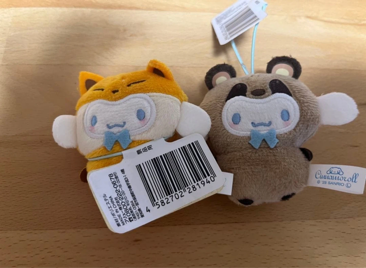 可愛いシナモロールのマスコット2点まとめ売りです。 サンリオキャラクターズ どうぶつきぐるみマスコット〜きつね編〜 どうぶつきぐるみマスコット〜たぬき編〜 1点だけの場合は400円です。 ゲームセンターのプライズ品です。 初期キズ等あるかもしれません。
