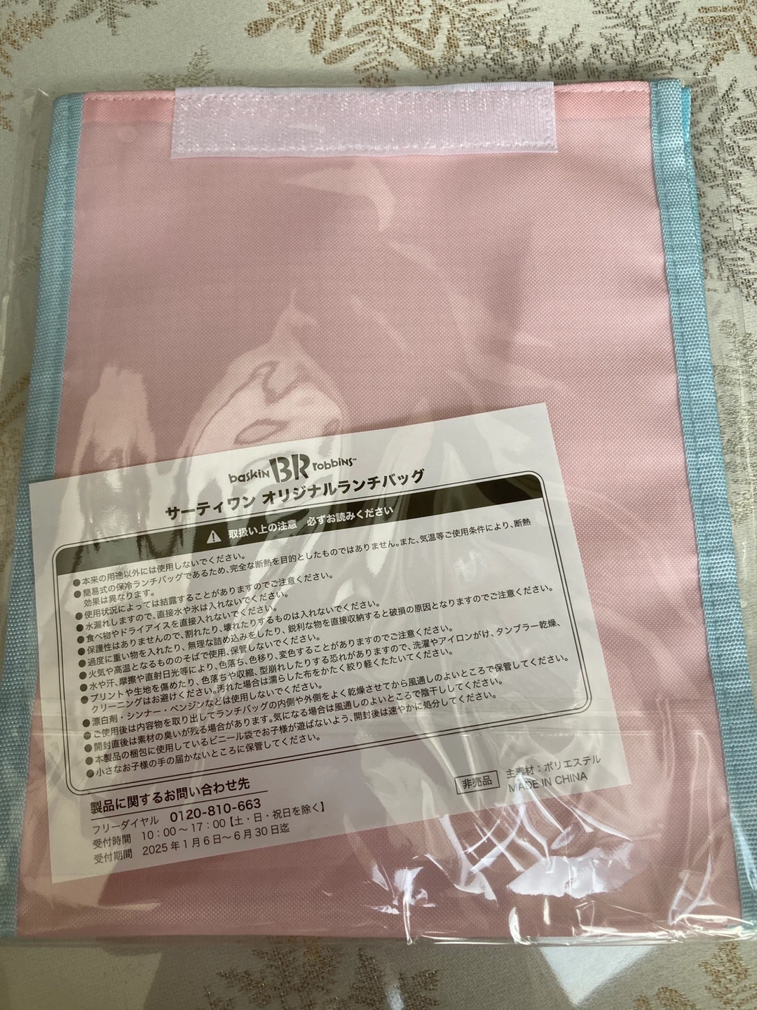 サーティワンのオリジナルランチバッグです。 ・色:ピンク、水色 ・未使用品 ・素材:ポリエステル 福袋を購入したときに入っていたものです。この先も使わなさそうなのでお譲りします。