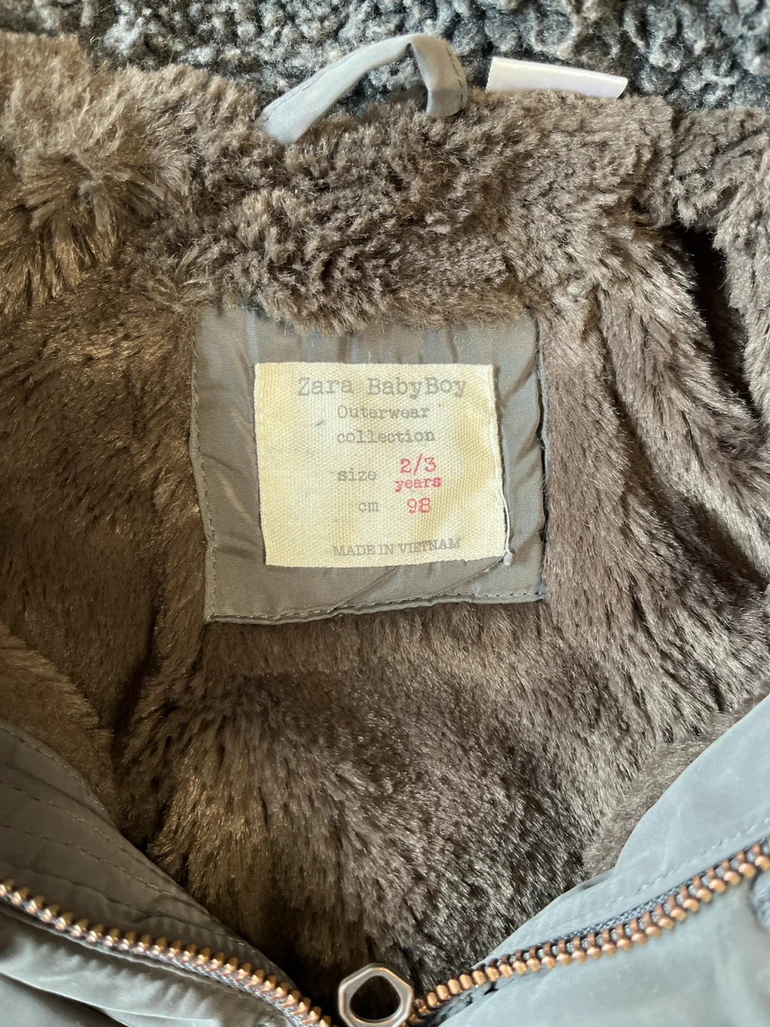 あたたかさザラベビーのアウターです。 ファーの裏地がとても肌触りが良いです。 真冬のアウターにいかがでしょうか? ・サイズ:2/3 years(98cm) ・色:グレー ・使用感少なめ 中古品であることご了承ください