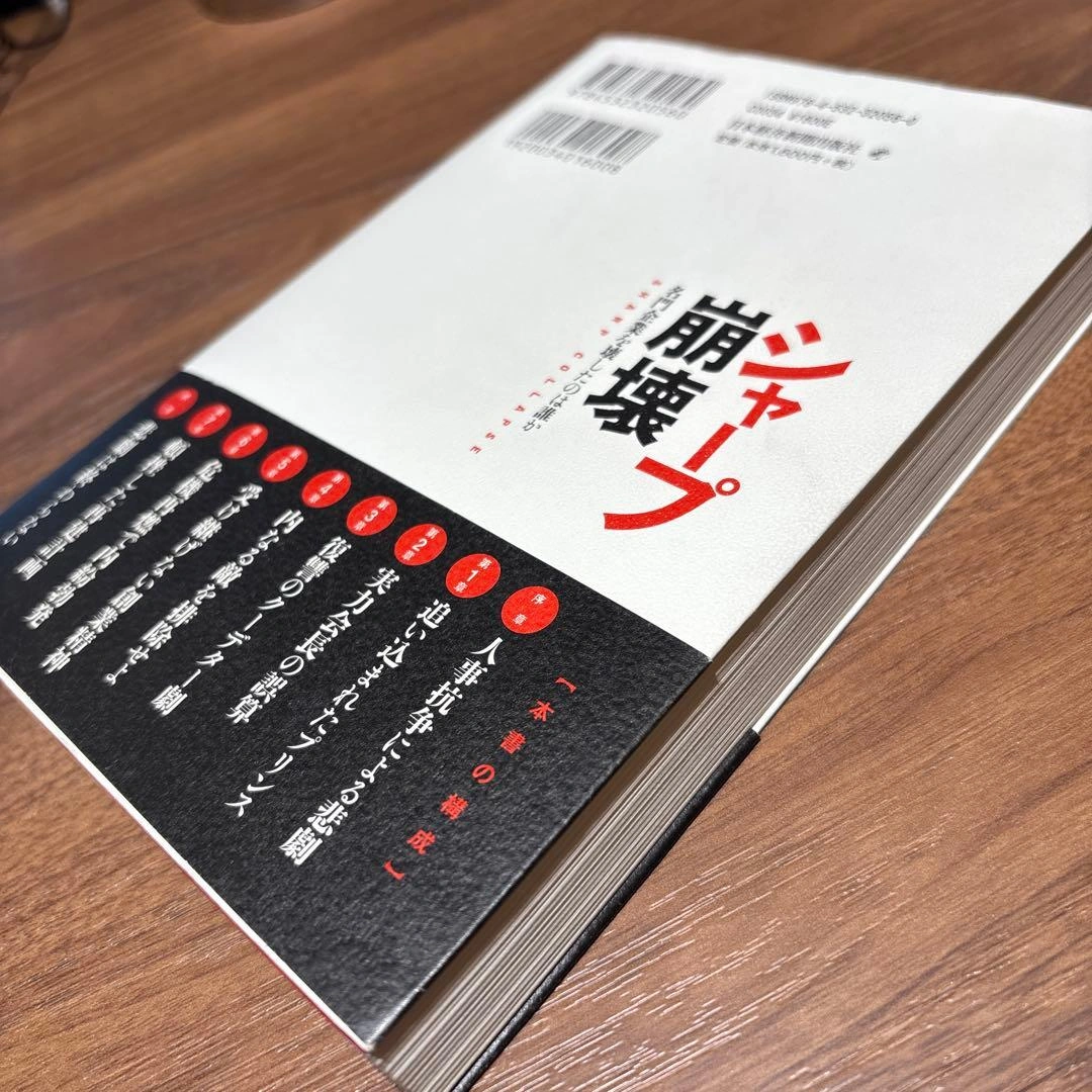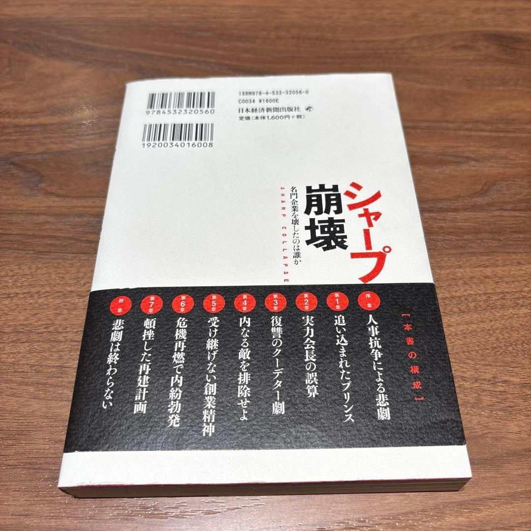シャープの崩壊を描いたビジネス書です。 - タイトル: シャープ崩壊 - 出版社: 日本経済新聞社 - ISBN: 978-4-532-11984-4 - 価格: 1600円 一度読んで、カバーを掛けた状態で本棚で保管しておりました。折れ目、落書きは無く状態はきれいです。ご希望の方はお気軽にご連絡ください。