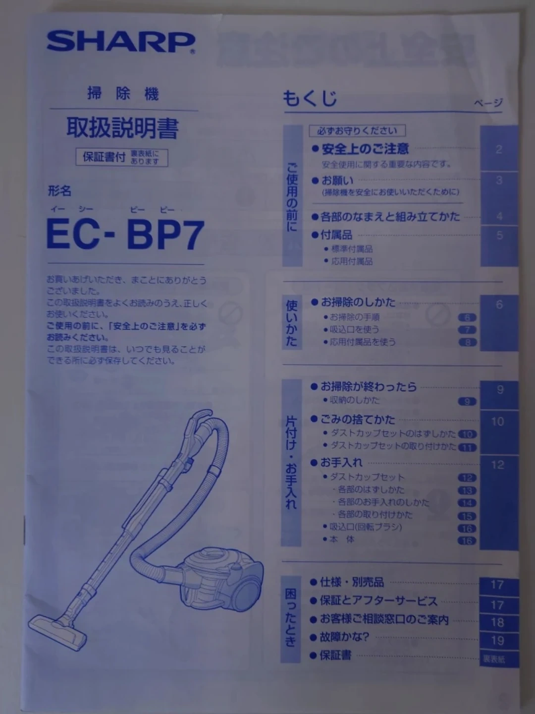 シャープの掃除機です。 【情報】 ブランド:シャープ 型番:EC-BP7 年式:2008年製 【状態】 使用感あり 【付属品】 説明書、各種ノズル 中古品であることをご了承ください。 京王線千歳烏山駅周辺での取引を希望しております。 時間帯は平日・休日ともに比較的融通がききますので、ご相談ください。