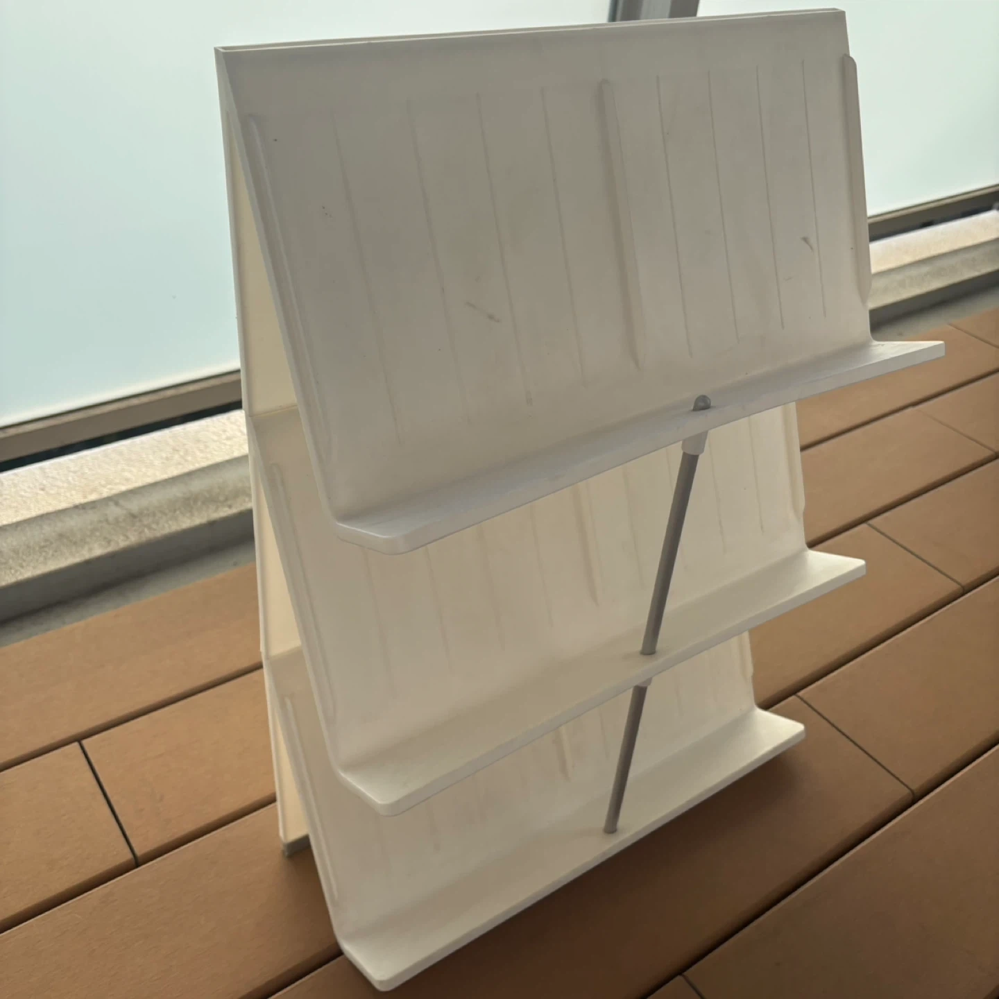 中古シューズラックです。 ⚫︎汚れあり ⚫︎幅45㎝×奥行17㎝×高さ56.5㎝ ※素人採寸となりますので誤差はご了承下さい。 ⚫︎色 ホワイト 割れ、欠けはありません。 駒岡AEON近辺でのお渡し希望です。 どうぞ宜しくお願い致します。