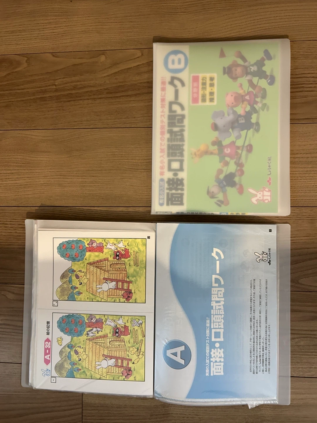 しょうがく社の面接・口頭試問ワークのAとBのセットです。 ・対象:小学校受験対策 ・状態:未使用に近い ・内容:ワークブック2冊(A, B) 使いやすいようにファイリングしてあります。 まとめ買いの場合はお値下げ交渉可能です。