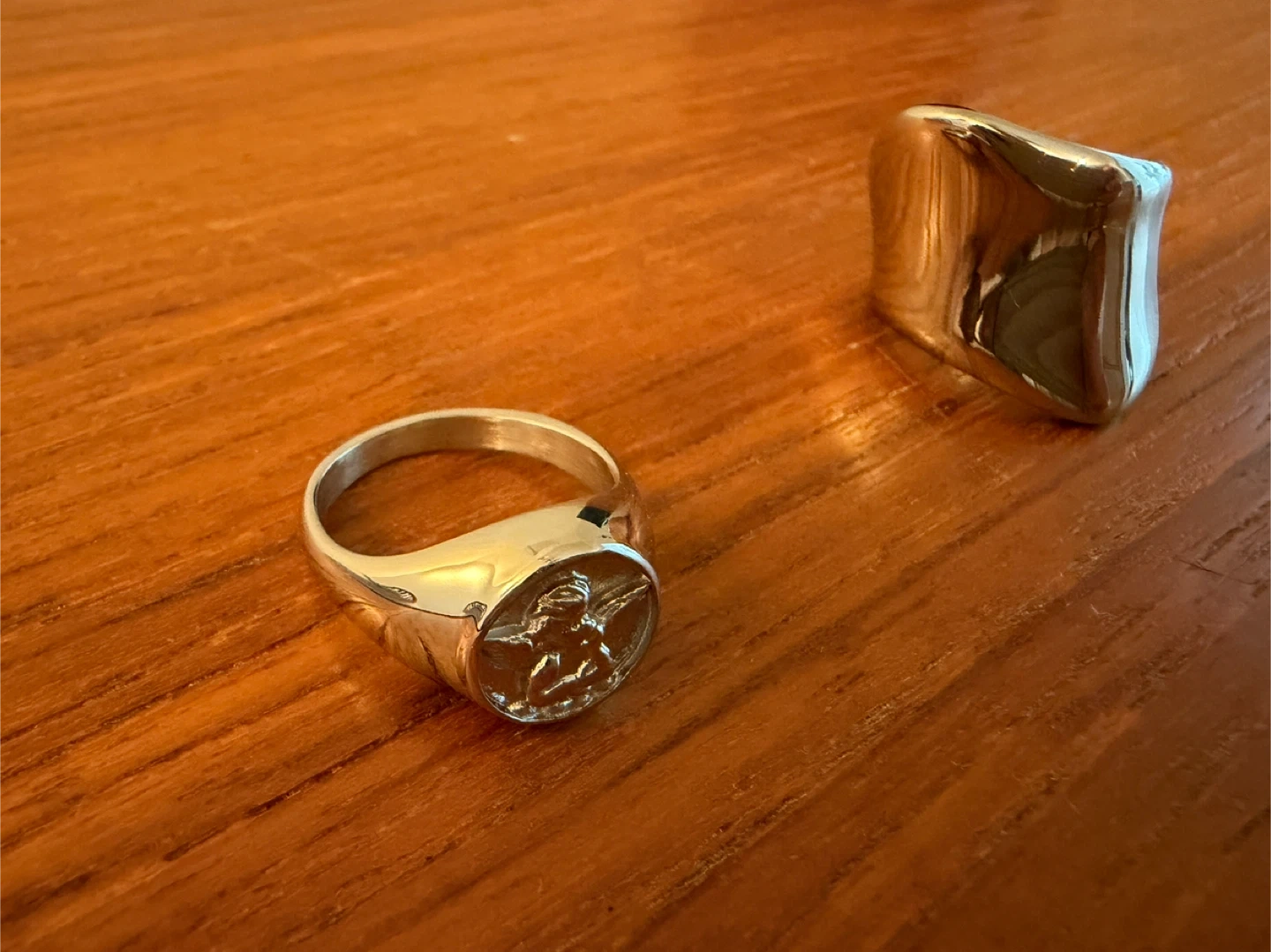 シルバーリング2個セットです。 ともにUSA6号(日本サイズで14号〜15号の間 ・素材:316Lサージカルステンレス ・状態:サイズが合わなく新品未使用 サージカルステンレスとは医療用ステンレスの意味です。 200種類を超えるステンレスの中でもアレルギー製を極めて低い素材で、金属アレルギーをおこしにくく、人体にとても優しい素材であることから、医療用工具のメスやハサミ等に使用されている素材です。 海水につけてもサビや変色を起こしにくく、非常に硬い素材ですので、傷もつきにくいのが特徴です。 ご不明点があればお気軽にご連絡ください