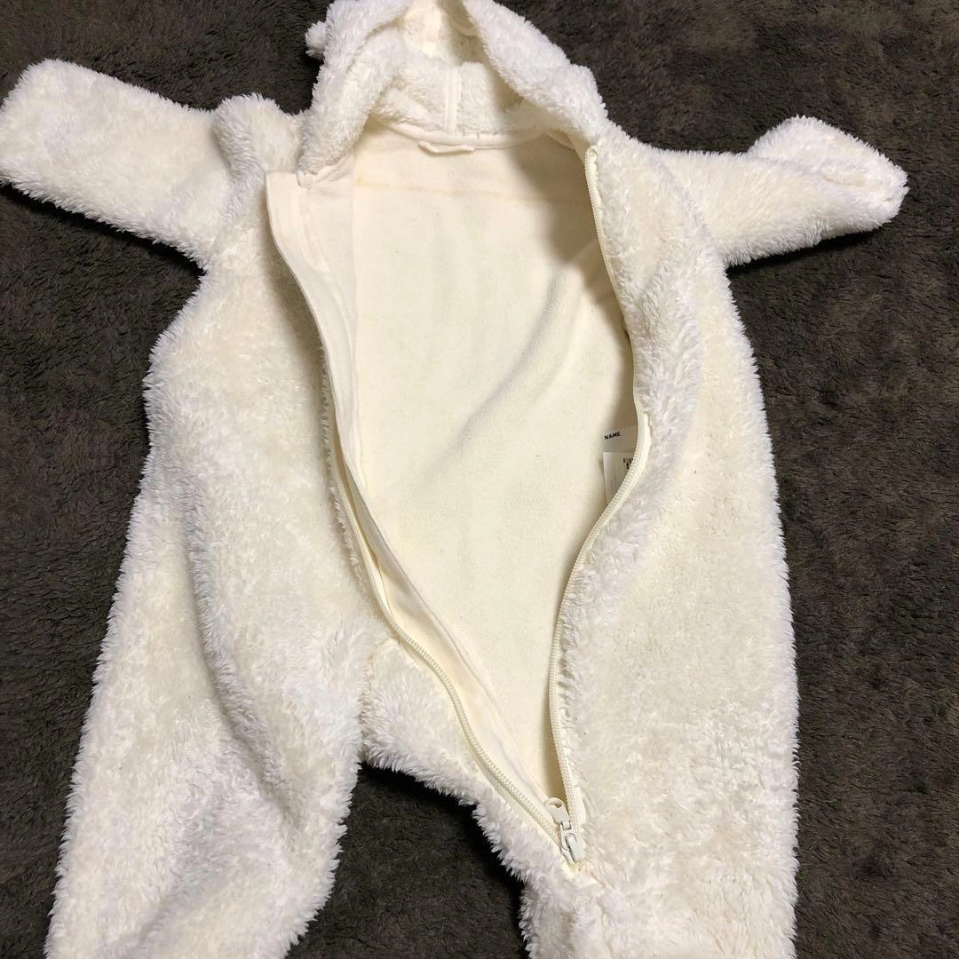 着せると、頭から足先まで包み込んで、もこもこで暖かいです。手の部分は折り返しがついてて、手袋みたいにカバーできます。 とにかく可愛いです☺︎ クリスマスやお祝いにも⭐︎ 寒い時期に役立ちます。 このままおんぶしたりベビーカー乗せたり便利でした。 使っていただける方にお譲りします☺︎ #ロンパース #2wayオール #ベビー服 #真冬 #寒さ対策 #防寒 ご希望の方はお気軽にご連絡ください。
