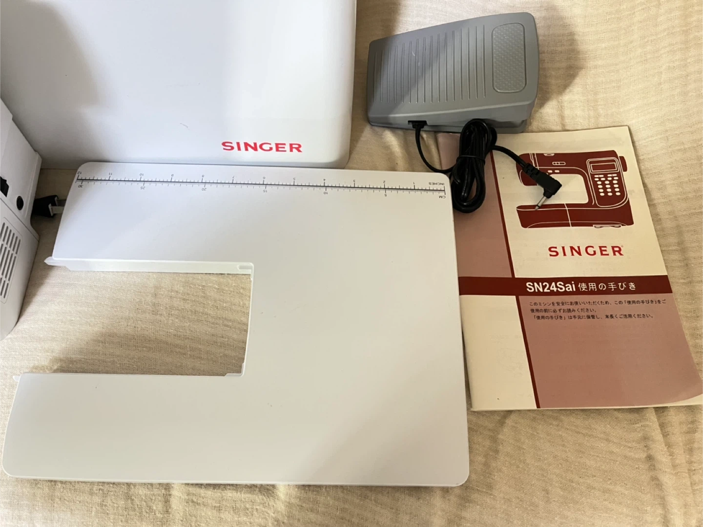 シンガーのコンピューターミシンです ⭐︎名前など刺繍できます 【情報】 ブランド:シンガー 型番:SN24Sai 【状態】 使用感少なめ 数回使用したので小傷などは気にしな方でお願いします。 フットコントローラーは未使用です。 【付属品】 フットコントローラー、取扱説明書、その他付属品 写真に写ってるもので全てです 中古品であることご了承ください ⭐︎三ツ沢下町周辺まで取りに来れる方限定でお願いします!!