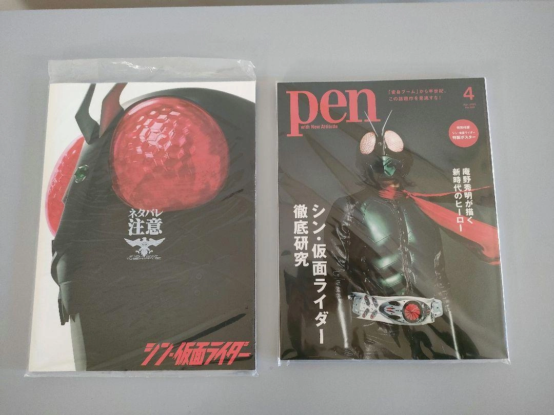 ご覧いただきありがとうございます。 シン・仮面ライダーの映画のパンフレットです。 シン・仮面ライダーの特集がなされたpenという雑誌もお付けいたします。 いずれも開封せずに自宅保管しておりました。 よろしくお願いいたします。