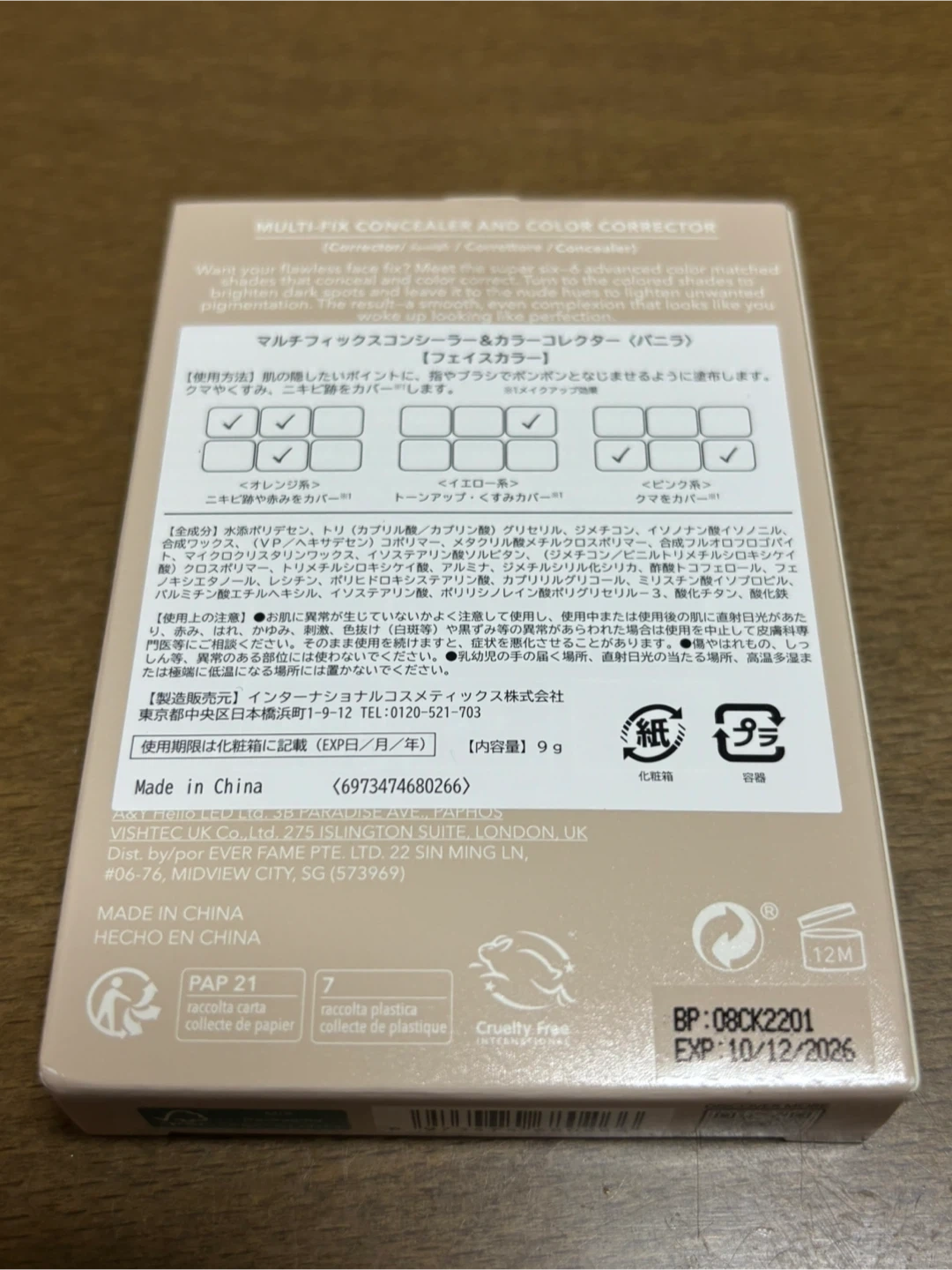 シーグラムのマルチフィックスコンシーラーです 【情報】 ブランド:シーグラム(SHEGLAM) 商品名:マルチフィックス コンシーラー & カラーコレクター バニラ 【その他】 使用期限: 2026年10月 定価は1,463円