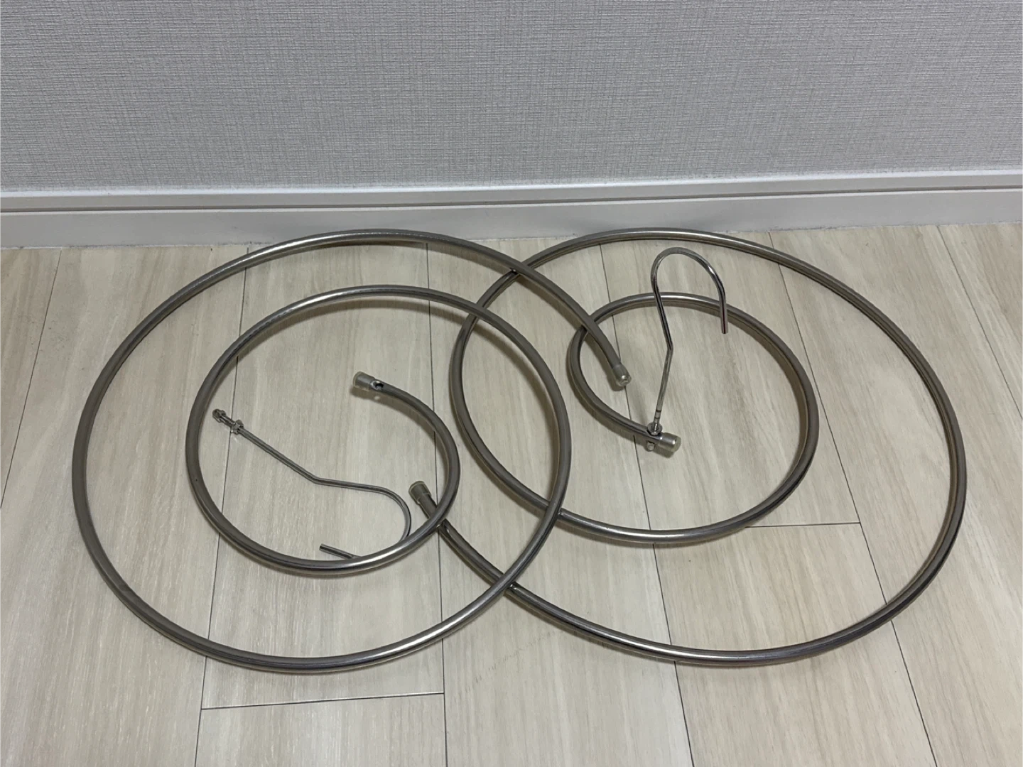 シーツ等、丈が長いものを干すのに 重宝するハンガーです。 使用しなくなったため出品します。 ・金属製 ・多少使用感あり ・フック部分取り外してコンパクトに収納可能。 中古ですが気にならない方よろしくお願いいたします。