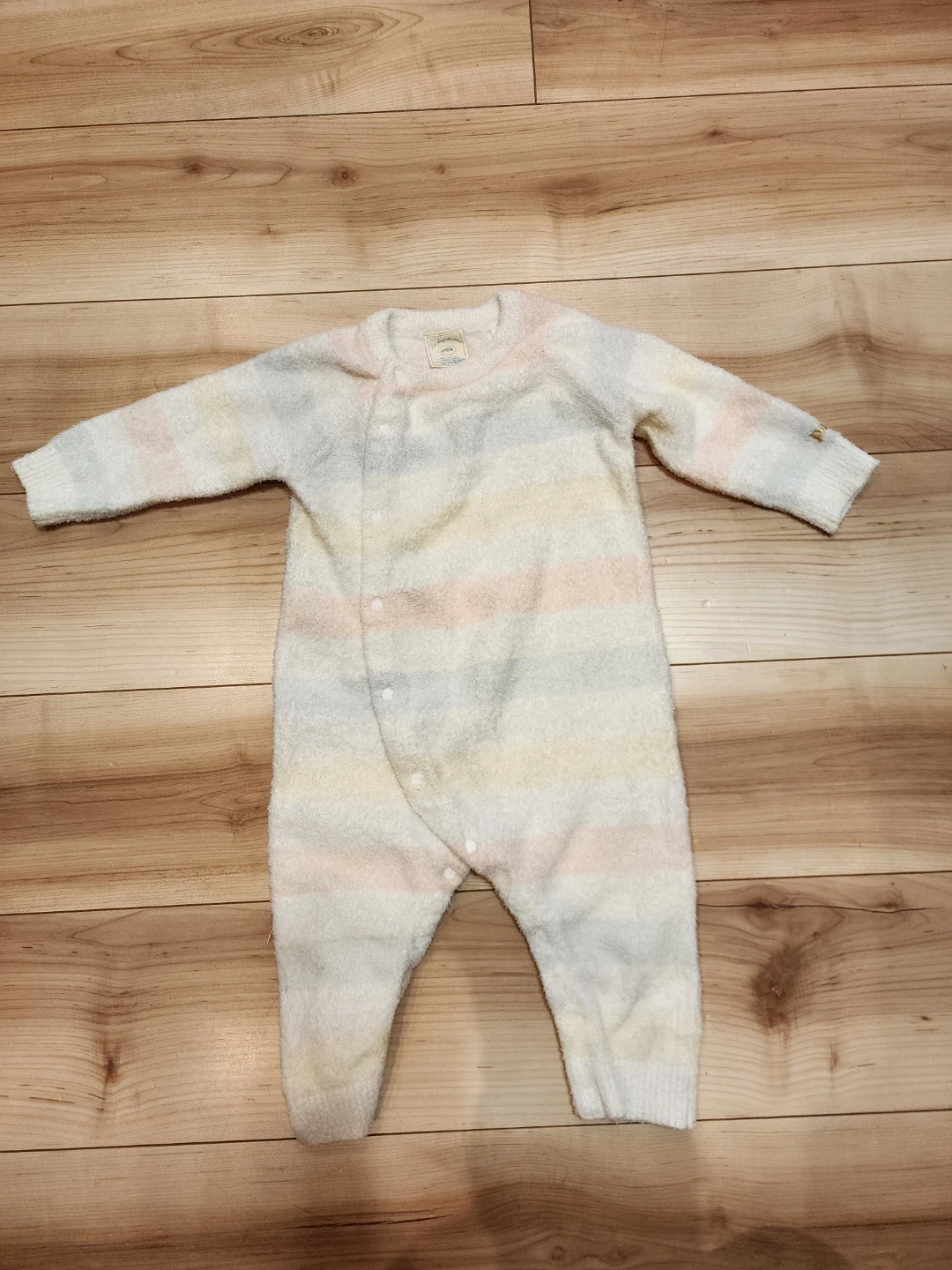 ジェラートピケのベビー服です。薄めのモコモコになります。 ・ブランド:ジェラートピケ ・種類:カバーオール ・サイズ:70-80 ・色:パステルカラーのストライプ ・状態:手触りも新品のものにかなり近い保存状態です。 1、2回は着せましたが、3回は着てないかな?という記憶です。検品で目立つ染みはありませんが、中古品であることご了承ください。 #gelato pique